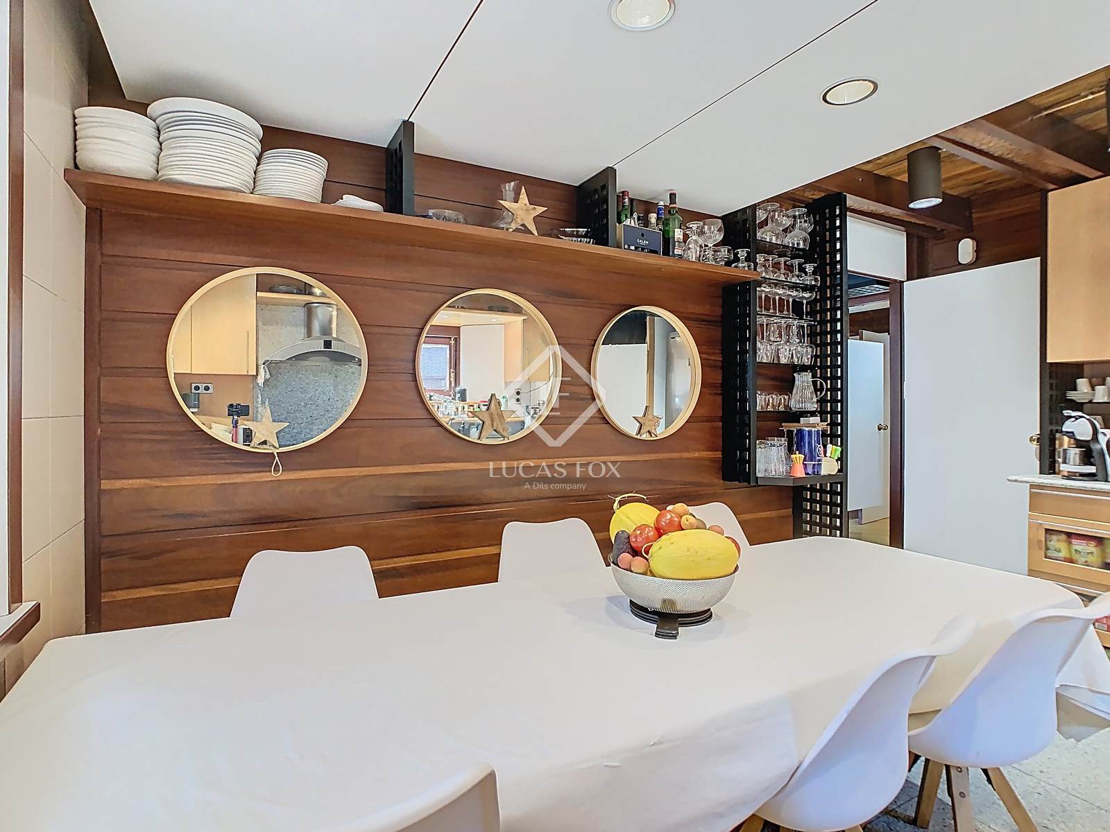 A la planta baixa hi trobem un càlid rebedor, que dóna pas directament al dormitori principal i al seu ampli vestidor. Un distribuïdor ens connecta amb el saló, que compta amb llar de foc i sortida a la terrassa, i amb la cuina independent, totalment equipada i destil rústic, amb acabats en fusta i ferro en harmonia amb la resta de la vivenda. Un dormitori doble completa la planta.