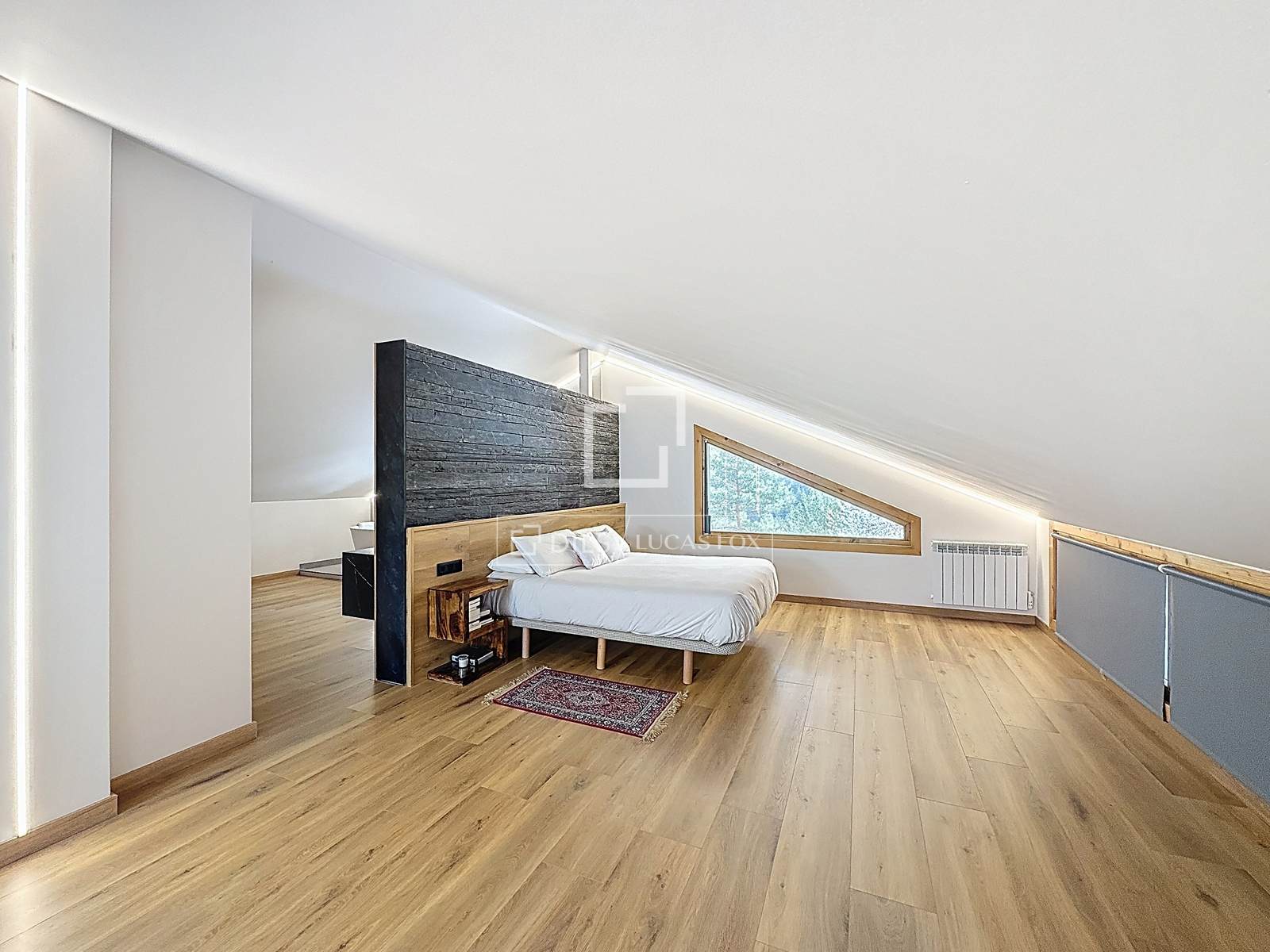 L'última planta està destinada íntegrament a la màster suite: un imponent dormitori principal d'aproximadament 100 m2, amb sostre amb golfes, bany amb doble rentamans, banyera i dutxa i un vestidor independent. L'espai permet dedicar una zona com a àrea de treball o despatx.