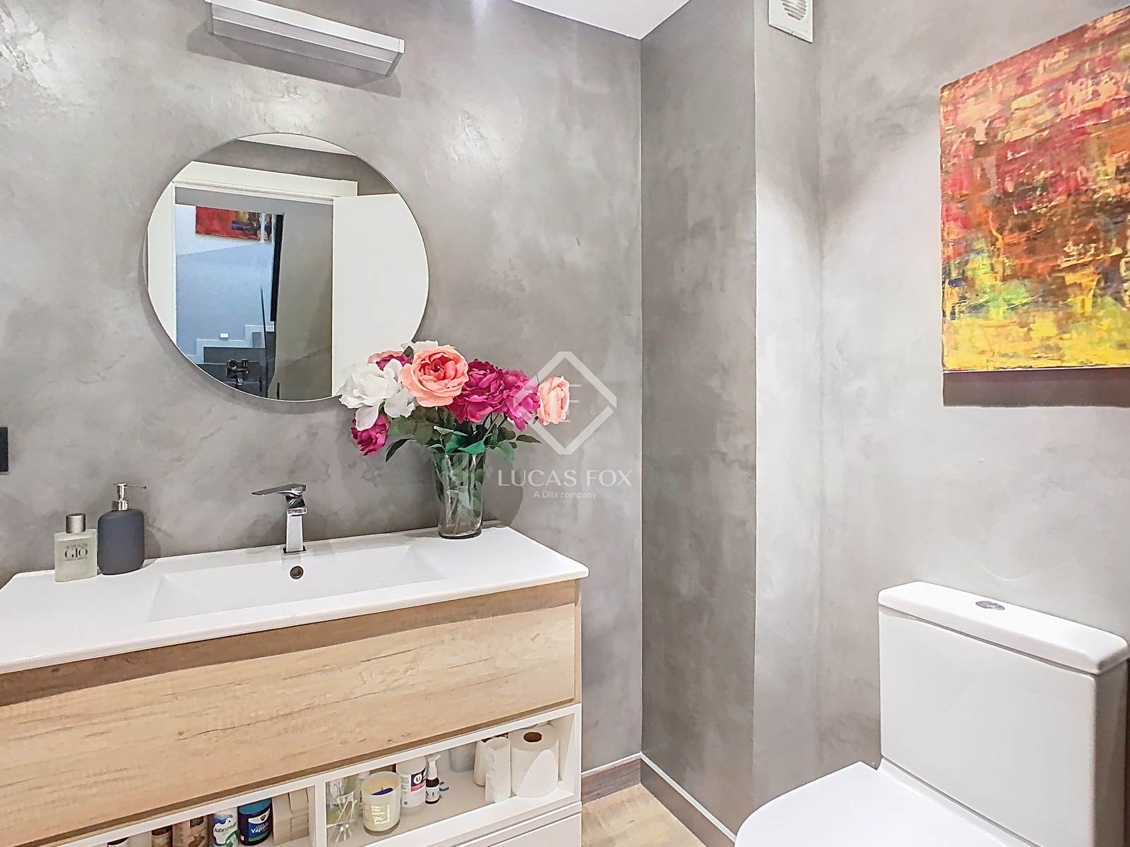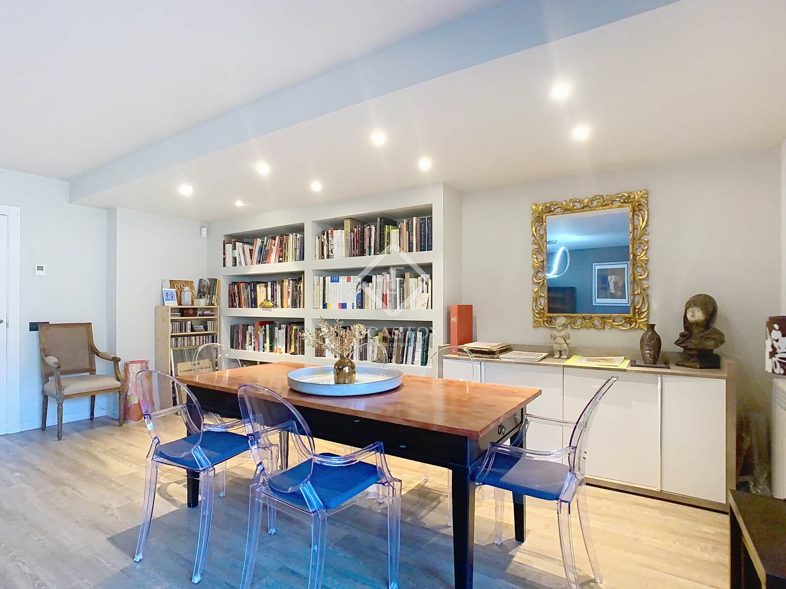 A la primera planta, es disposa la zona de dia, que acull el saló, el menjador i la cuina, en un espai diàfan, però amb els ambients ben diferenciats. D´una banda, s´ofereix l´àmplia cuina de microciment amb sortida al jardí i amb la seva zona d´office. El jardí podria configurar-se com a zona chill-out per relaxar-se i gaudir de l'entorn. D´altra banda, s´ofereix el saló-menjador amb sortida a una gran terrassa amb grans finestrals que permeten l´entrada d´abundant llum natural i ofereixen unes fantàstiques vistes. La terrassa ofereix espai per disposar de taula i diverses cadires, ideal com a menjador d'estiu. La planta es completa amb un bany de cortesia.