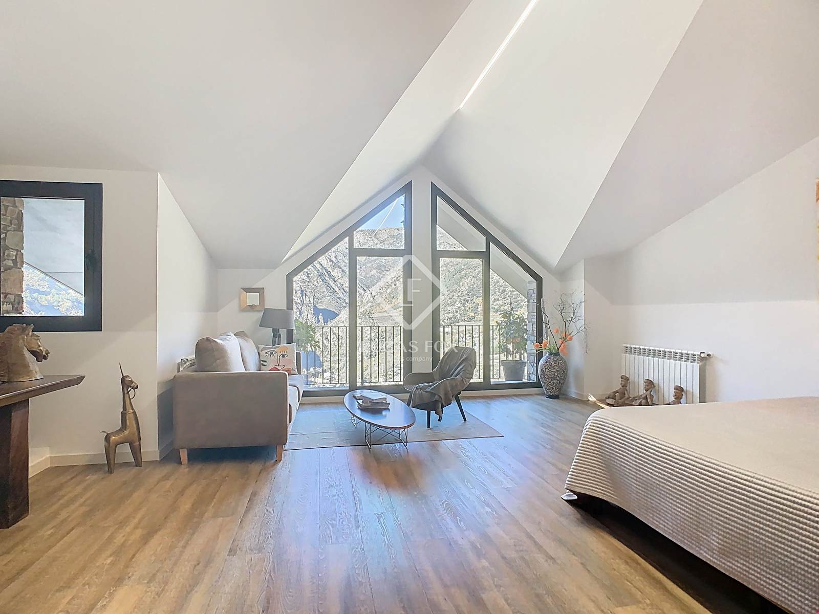 La tercera planta inclou l'ampli dormitori principal, amb bany privat i vestidor i amb grans finestrals i vistes panoràmiques a la vall andorrà. A més, s'ofereix un despatx ideal per teletreballar. Donada la mida de la planta, podria dividir-se en dos dormitoris.