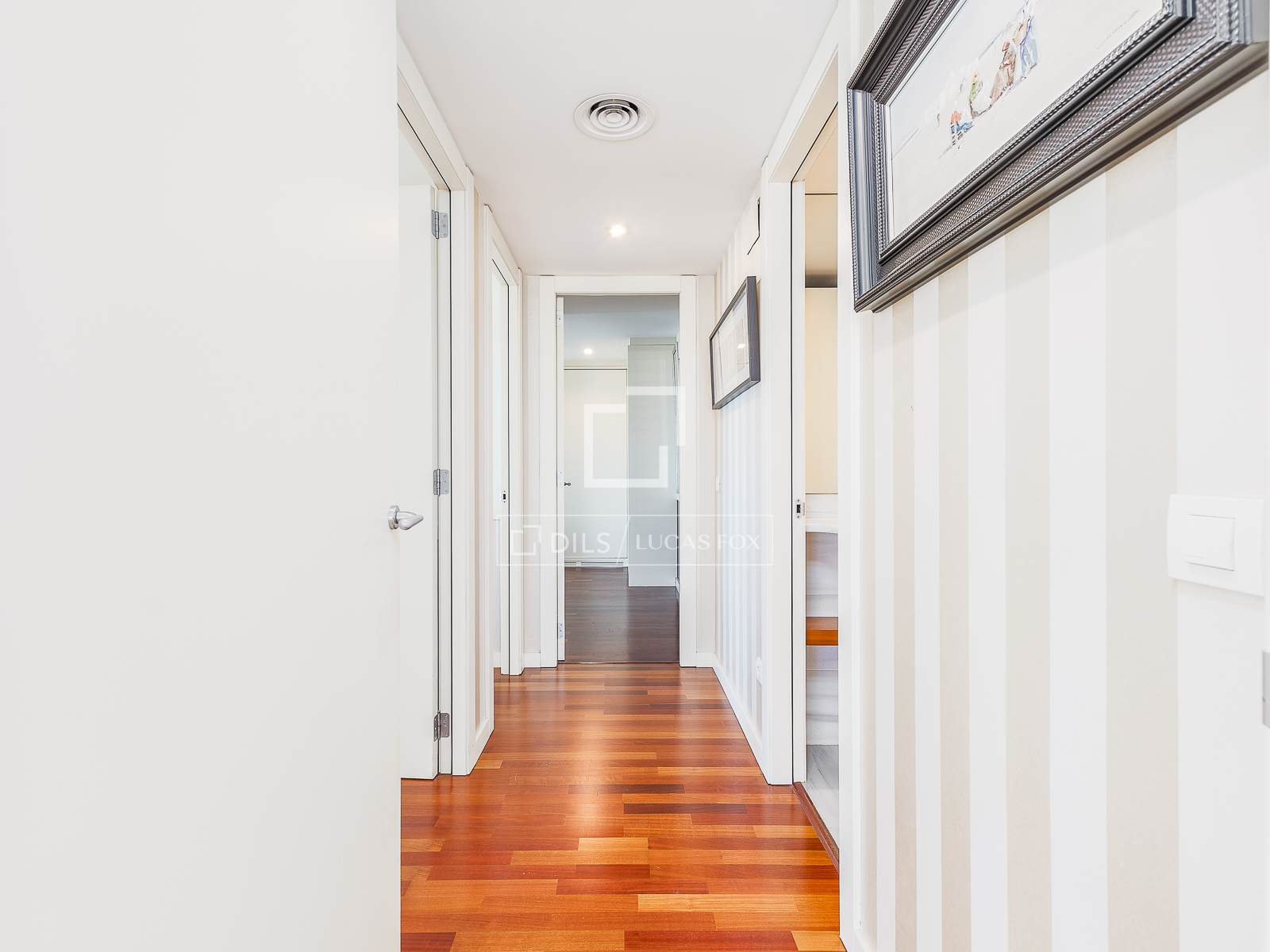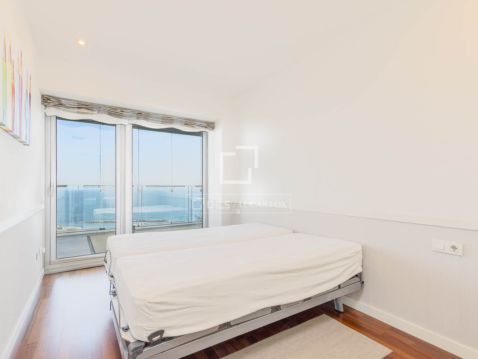 La propietat es troba a la planta alta de l'edifici Illa de la Llum de Diagonal Mar (Barcelona), un enclavament que ofereix luxe i comoditat. Compte amb tres dormitoris dobles, dos banys (un en suite), cuina completa, saló espaiós, bugaderia i terrassa amb vistes al mar ia la ciutat.