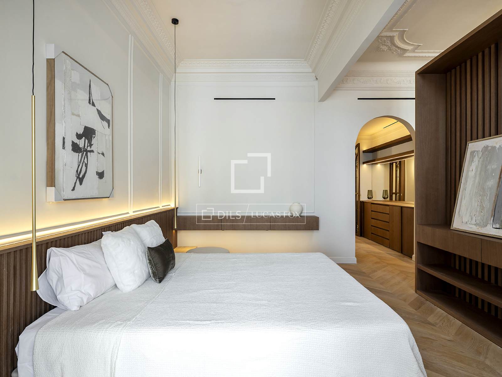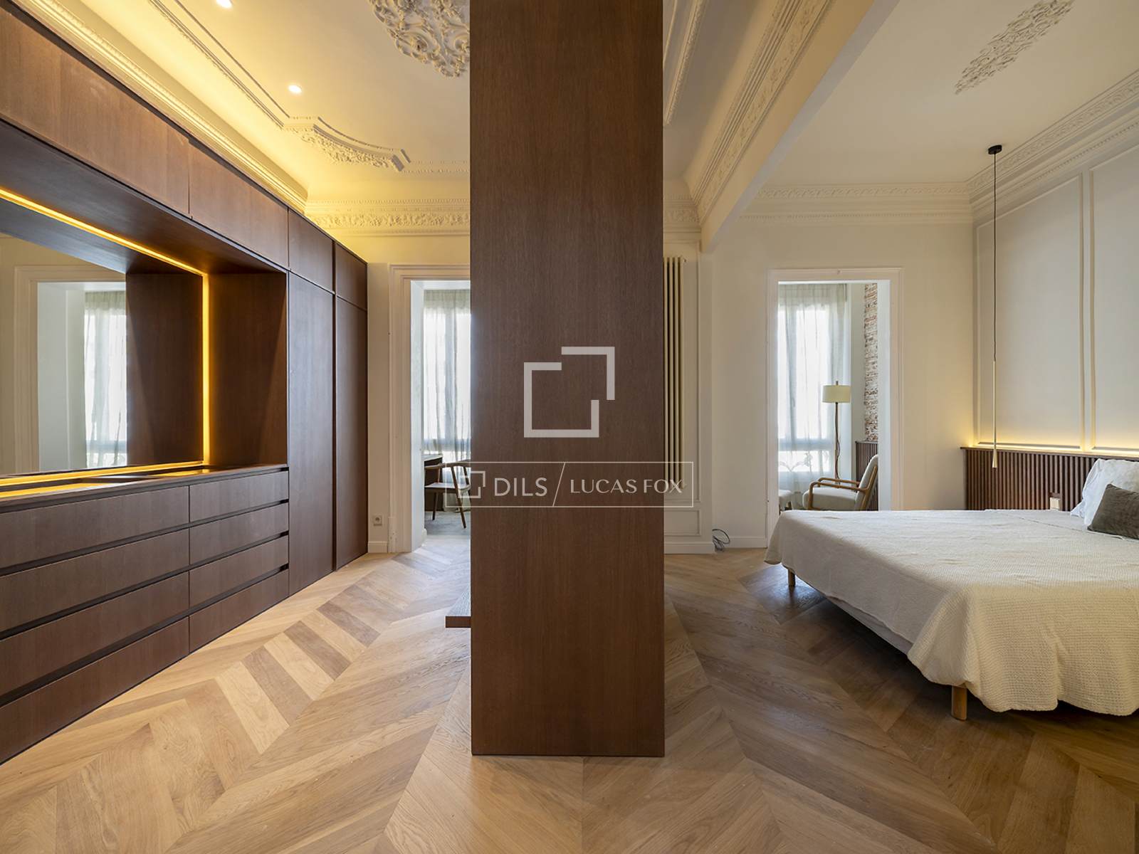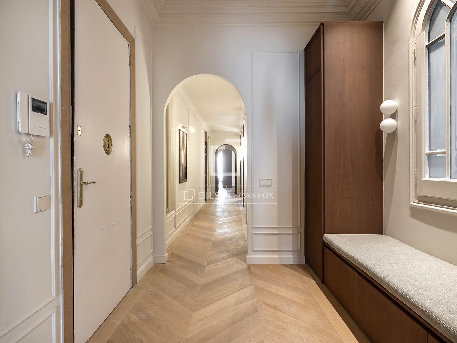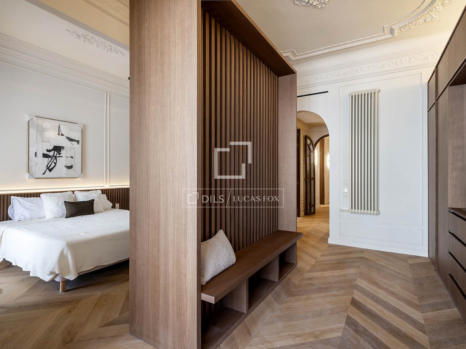 Residència modernista luxosament renovada a l'Eixample, a prop del Passeig de Gràcia. 179 m² de refinament amb acabats de roure, pedra travertí, detalls restaurats i interiors elegants. Una barreja atemporal d'herència i disseny modern.