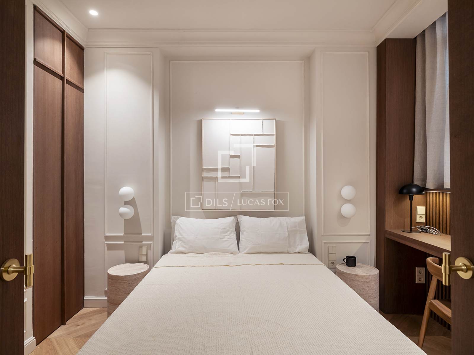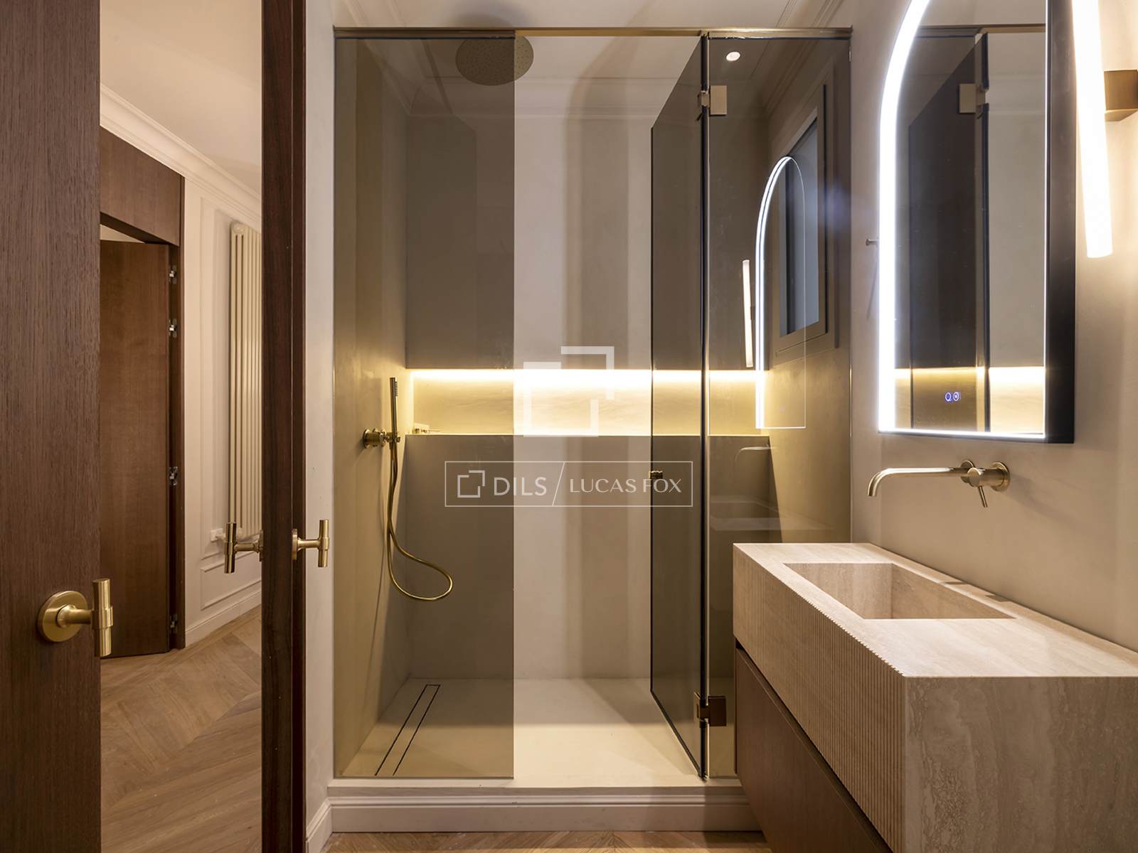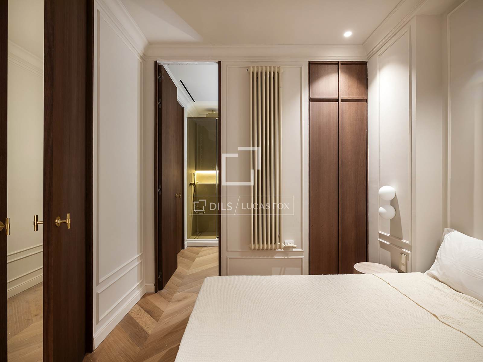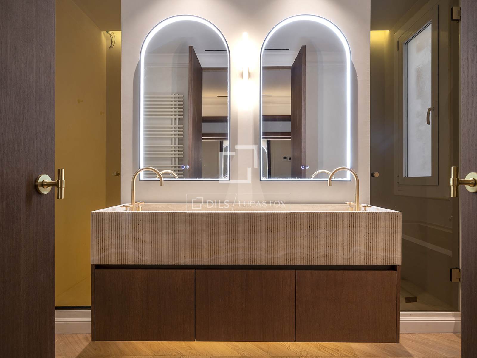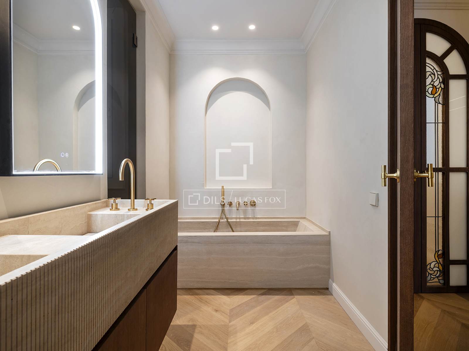 Residència modernista luxosament renovada a l'Eixample, a prop del Passeig de Gràcia. 179 m² de refinament amb acabats de roure, pedra travertí, detalls restaurats i interiors elegants. Una barreja atemporal d'herència i disseny modern.