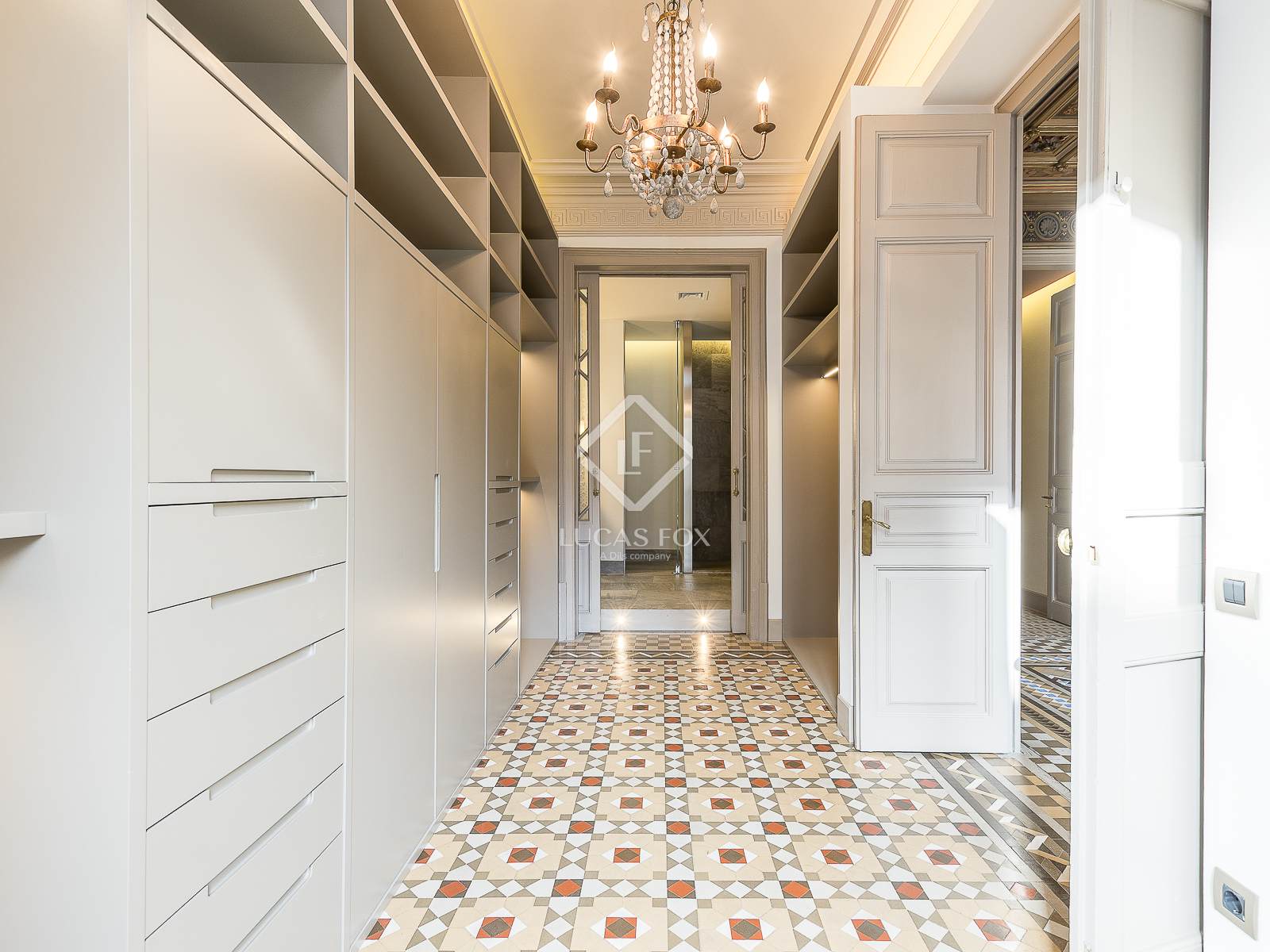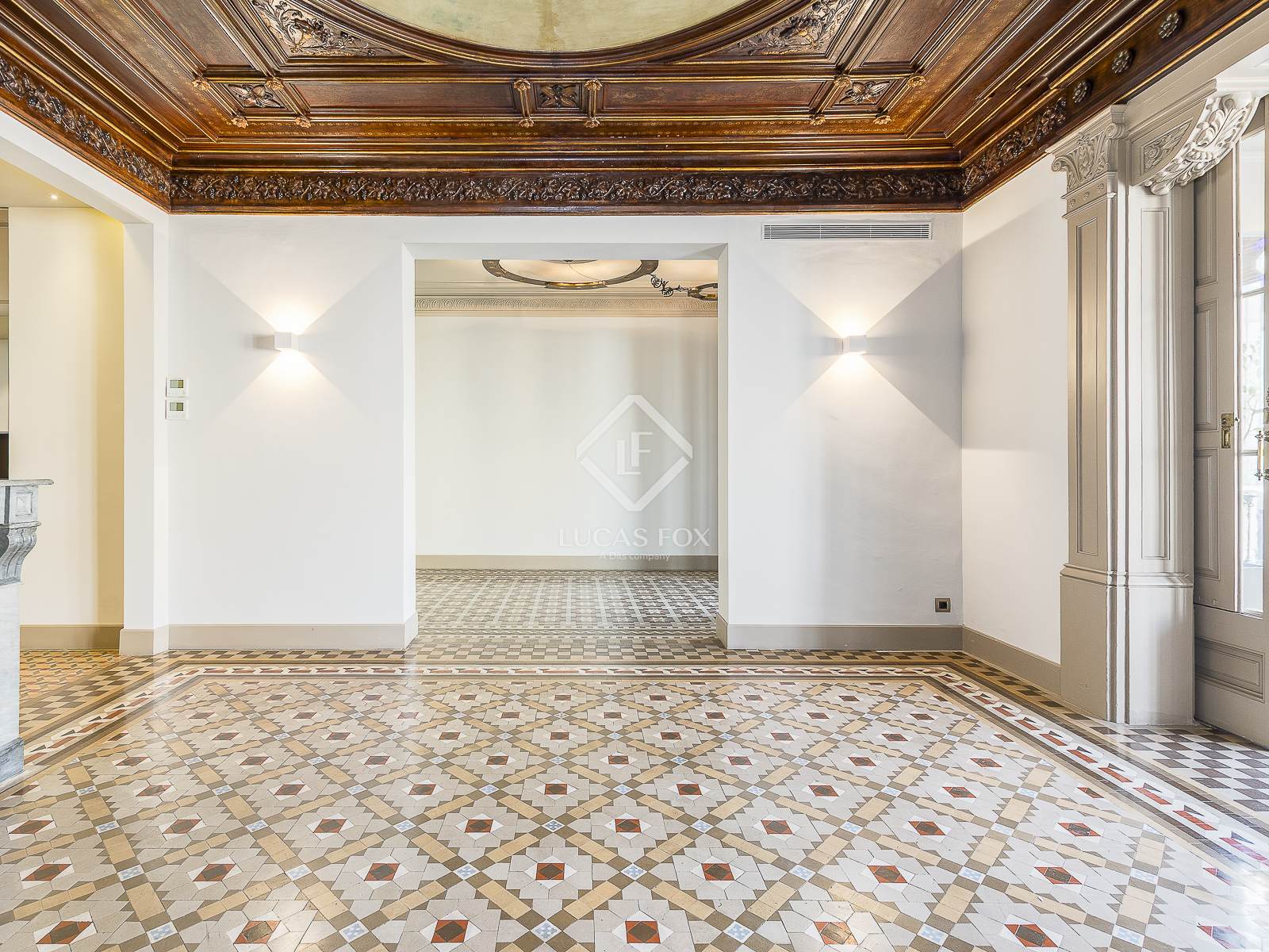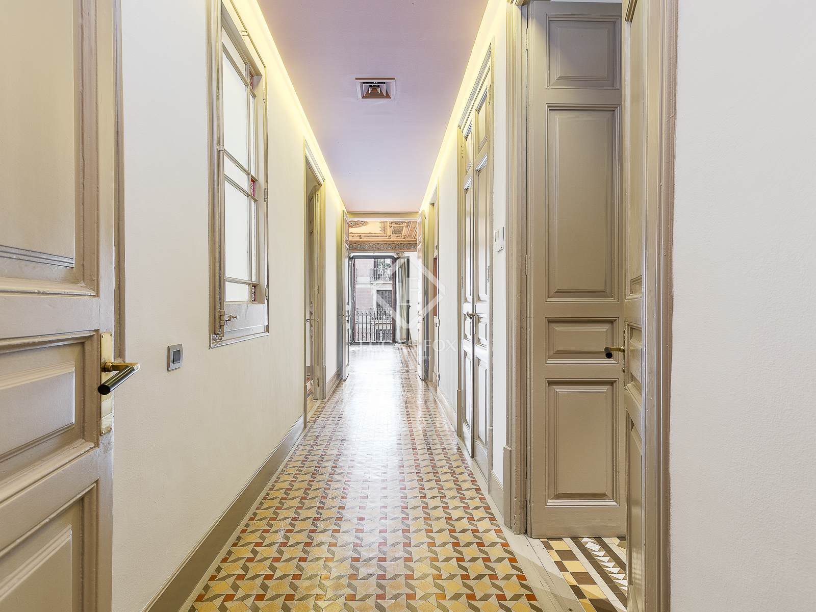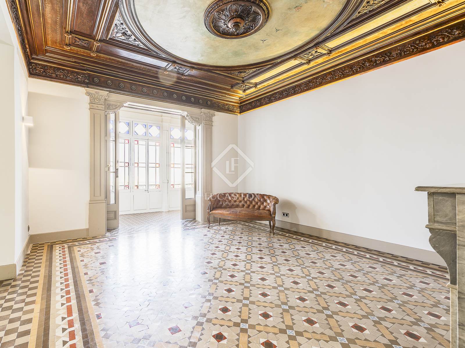 Pis de 210 m² totalment reformat i amb tots els elements originals conservats. Disposa de terres de mosaic hidràulic de Nolla, sostres alts amb motius florals i geomètrics, finestres amb motius decoratius, fusteria de fusta i una xemeneia de marbre.