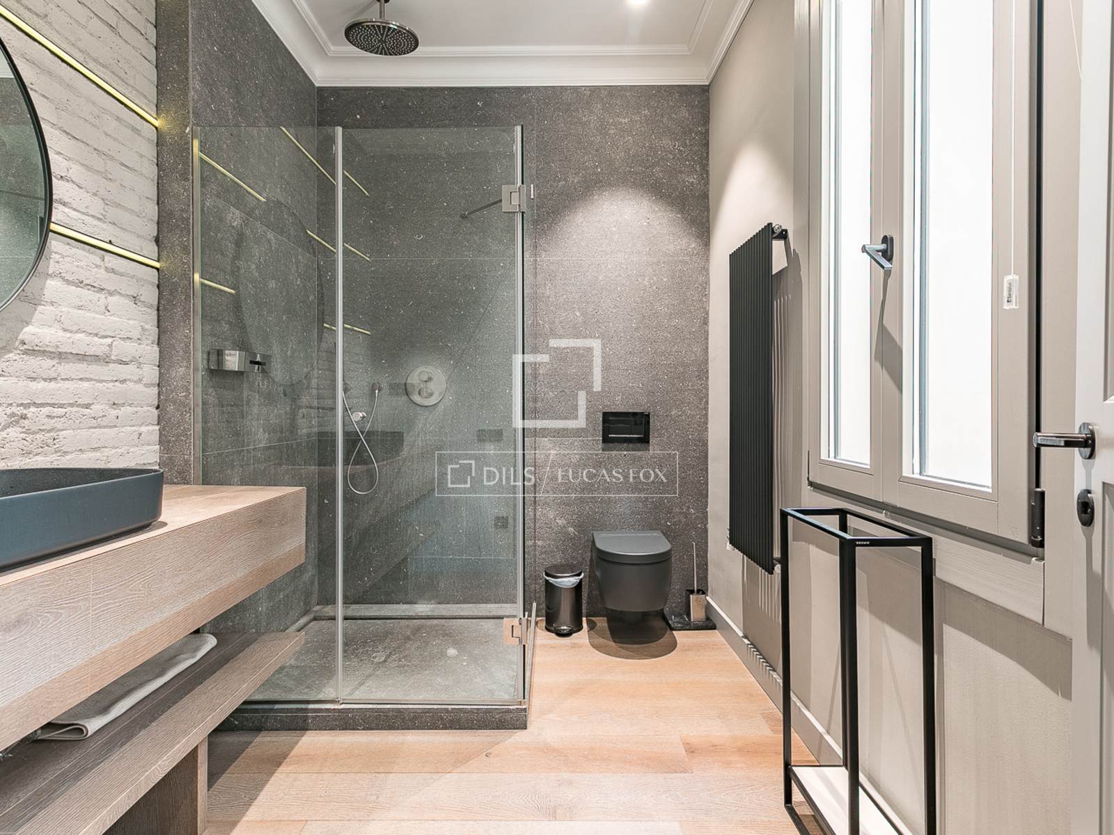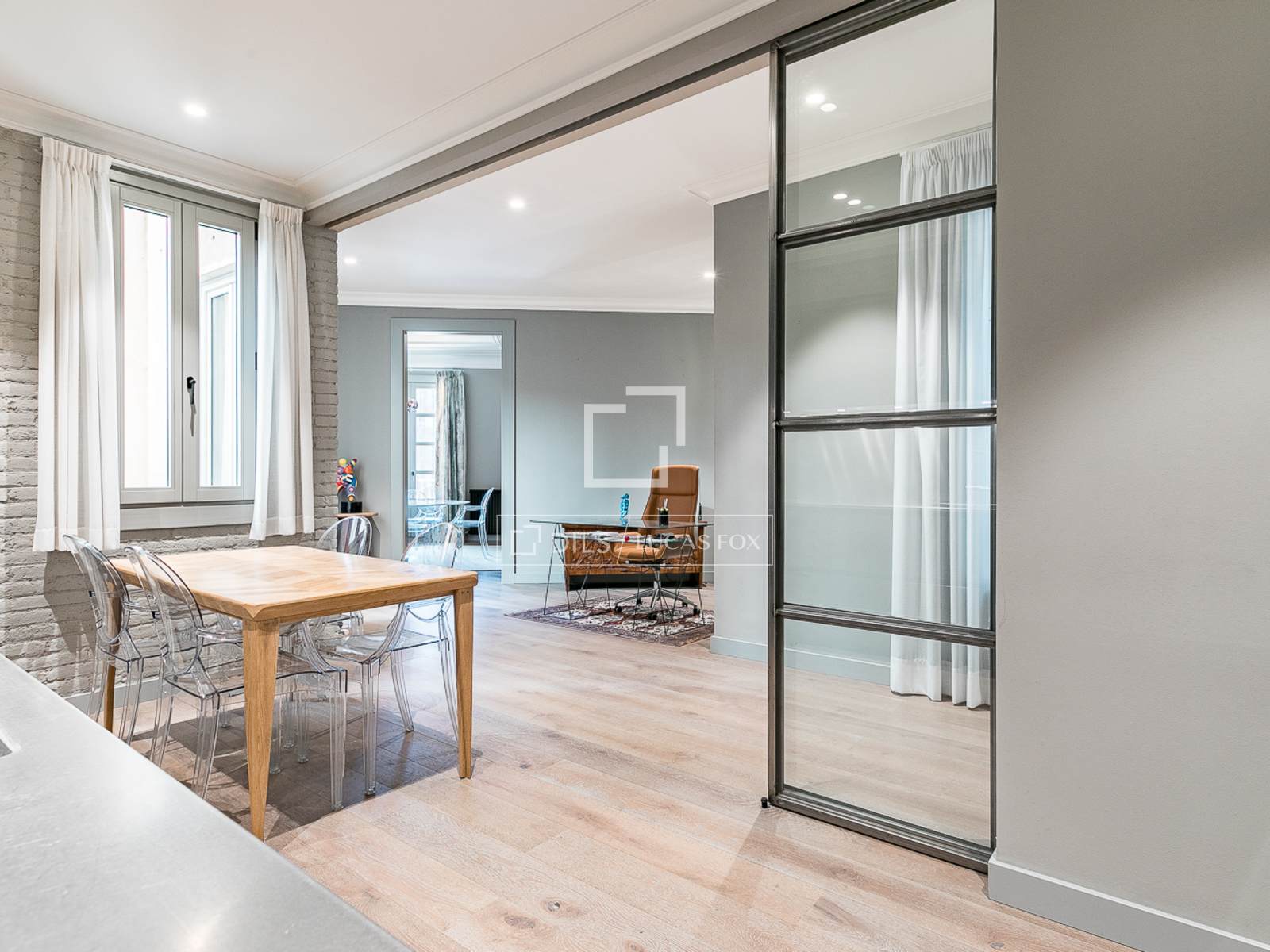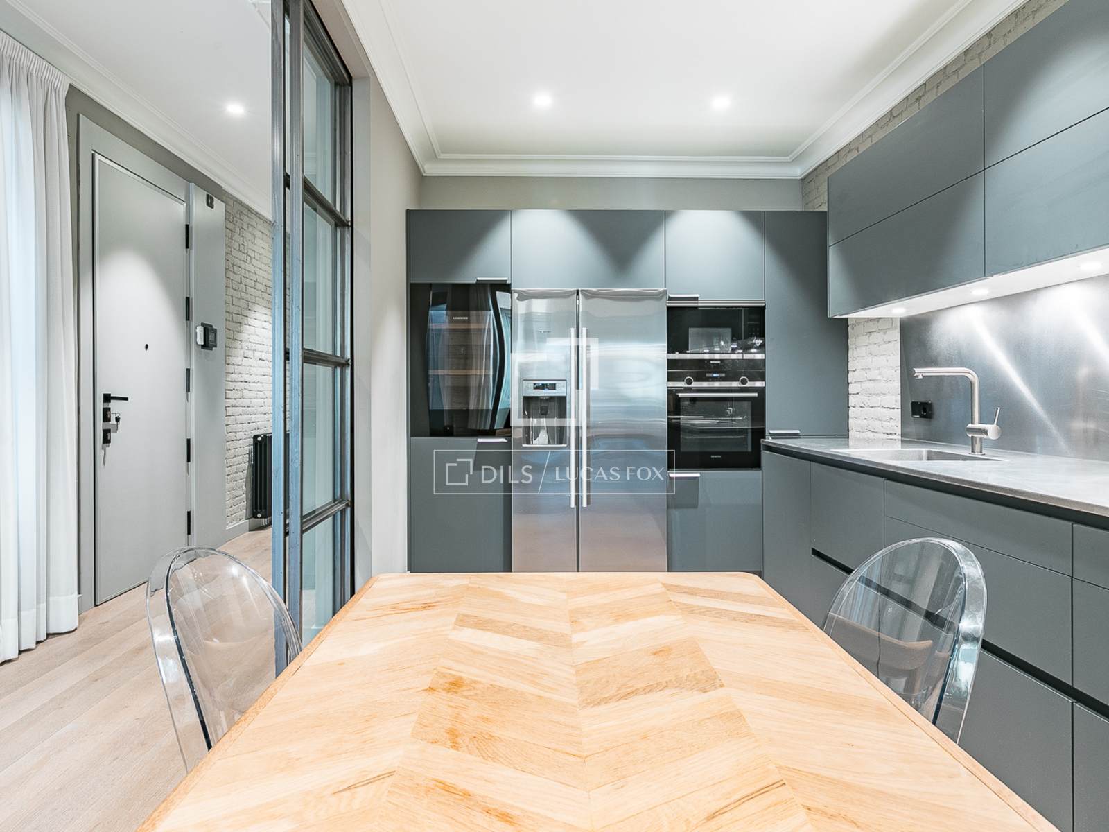 La cuina contemporània, totalment equipada, presenta electrodomèstics d'alta gamma i un disseny elegant, que equilibra perfectament funcionalitat i estil. A tota la residència, els elements arquitectònics clàssics de Barcelona, com ara sostres alts i acabats refinats, es combinen harmoniosament amb l'elegància moderna i els detalls fets a mida.