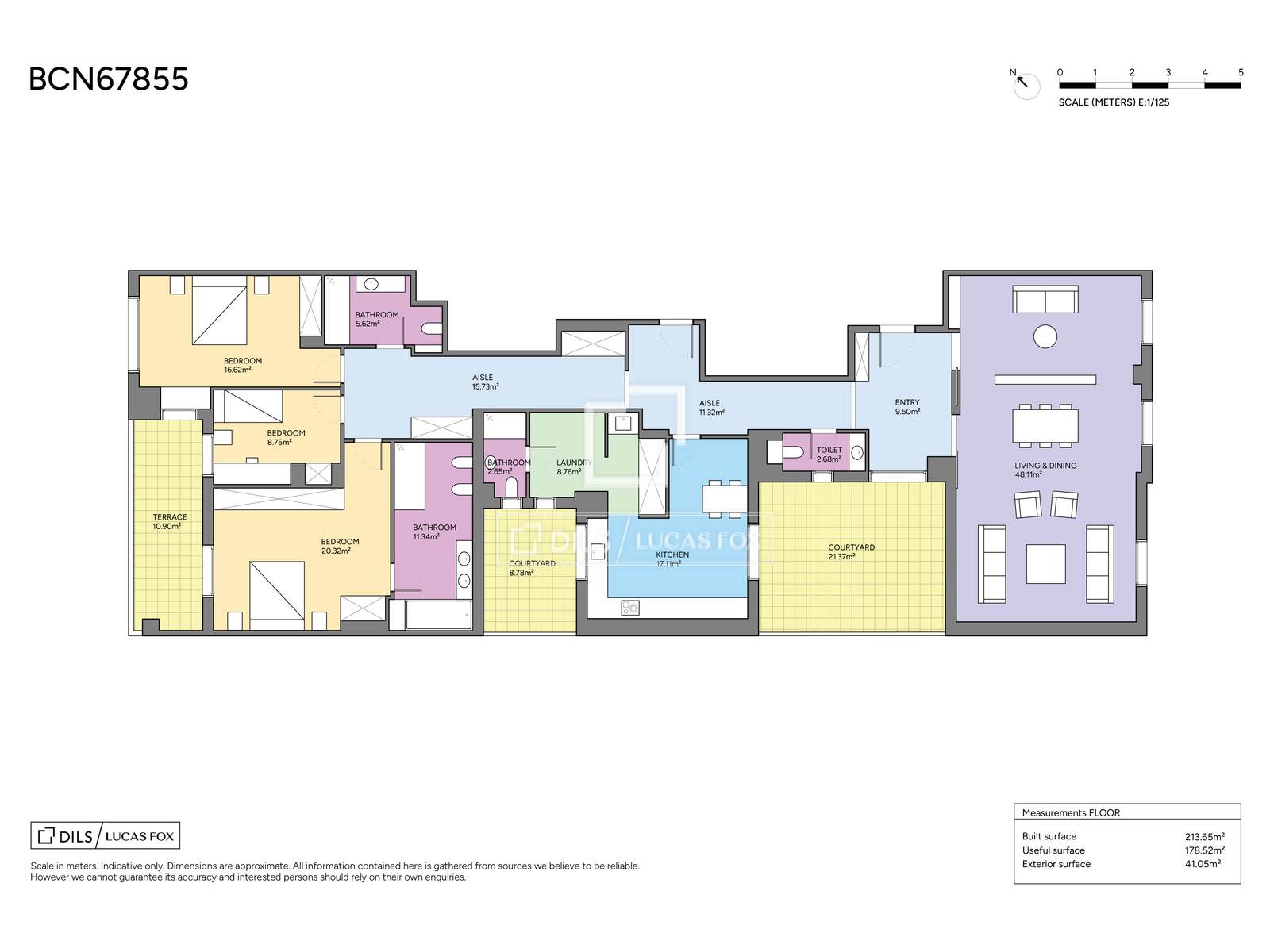 La cuina de disseny de 17 m² ofereix un equilibri perfecte entre estètica i funcionalitat, complementada per una zona de bugaderia independent i accés directe a una terrassa interior privada. Dos patis addicionals introdueixen llum natural a l'interior de l'apartament, millorant la sensació d'espai i tranquil·litat a tota la casa.