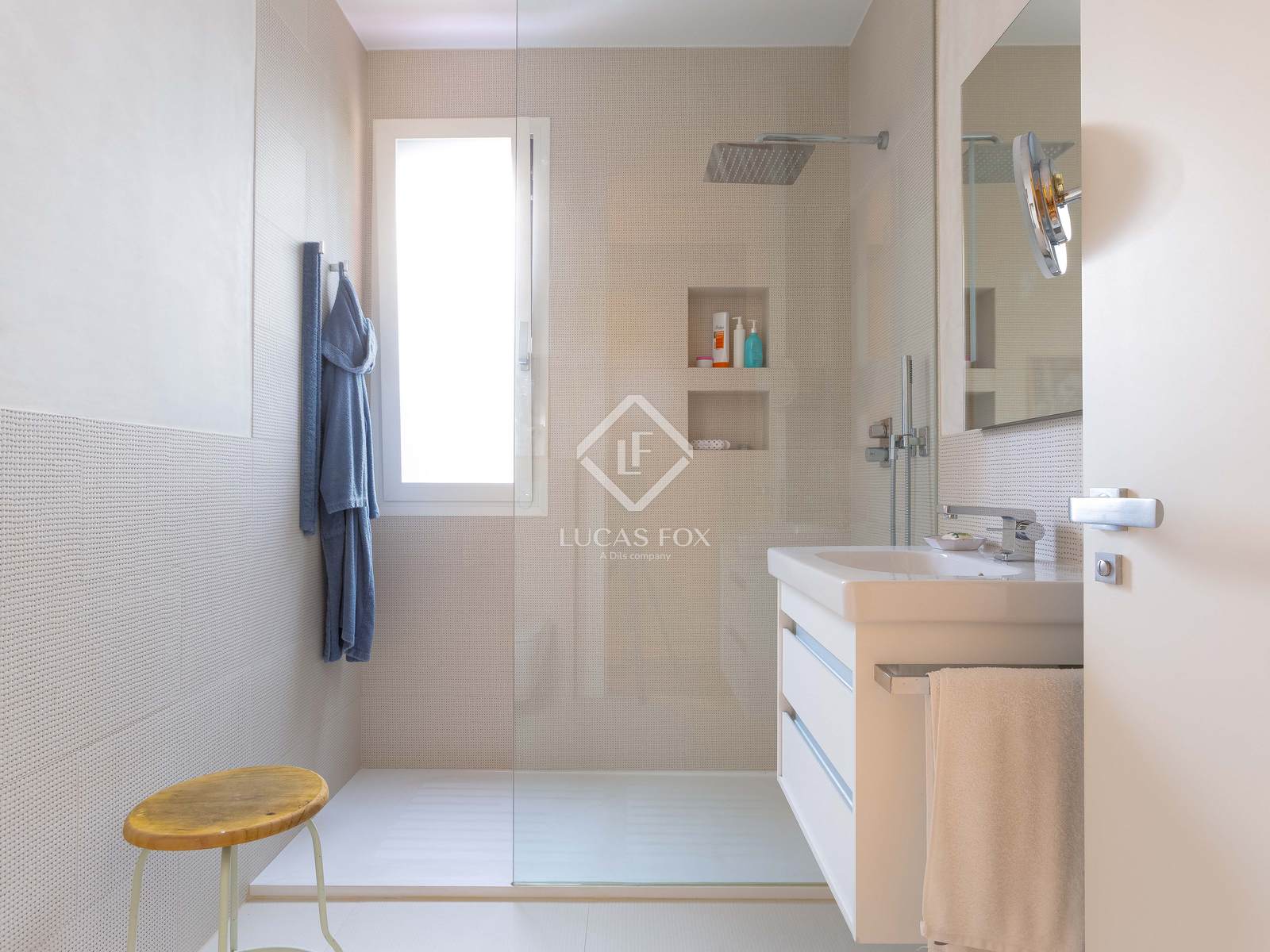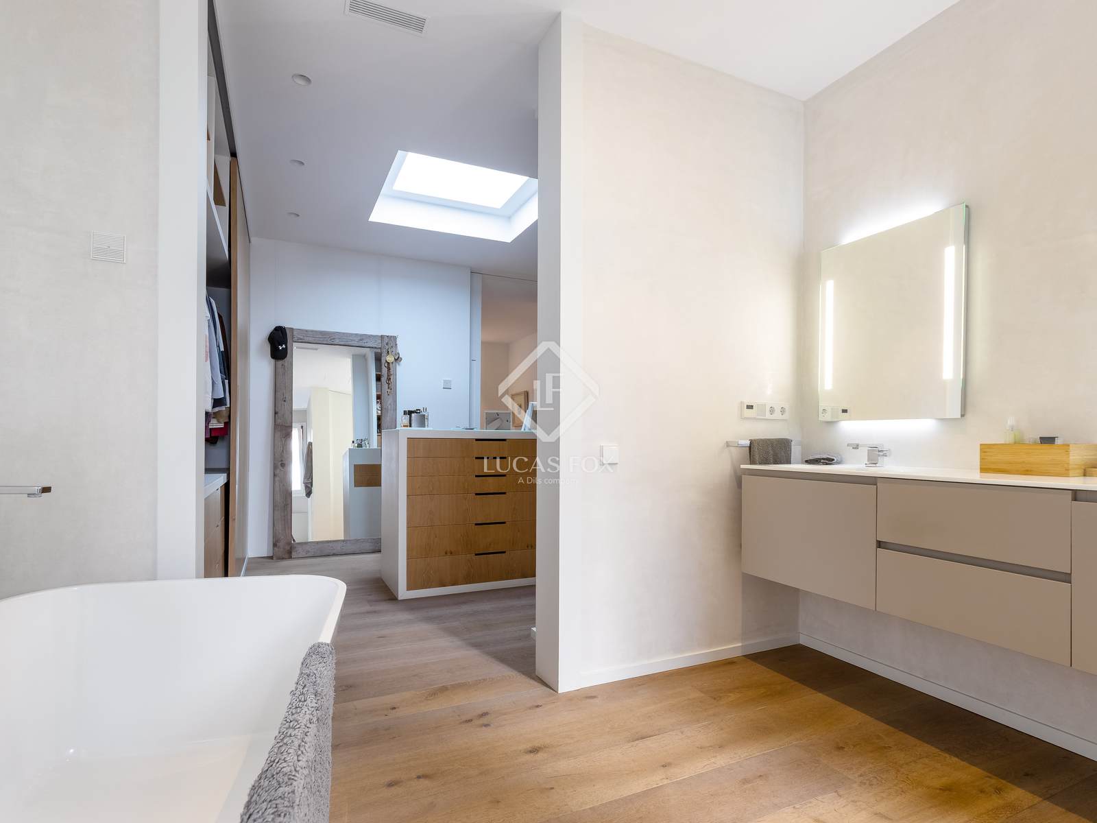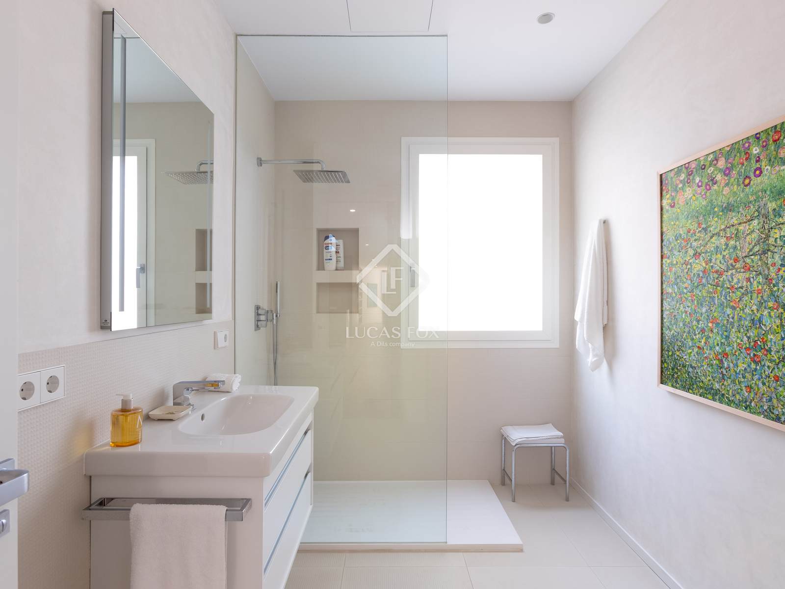 La lluminositat és un altre dels fils conductors de l'habitatge: els finestrals de fusteria Reynaers d'alta seguretat emmarquen l'exterior, inundant cada estança de llum natural i realçant la sensació d'amplitud. Els detalls constructius, com el parquet massís WINCO de 2,2 cm, les portes de terra a sostre o les aixetes Dornbracht, sumen qualitat i personalitat en cada ambient.