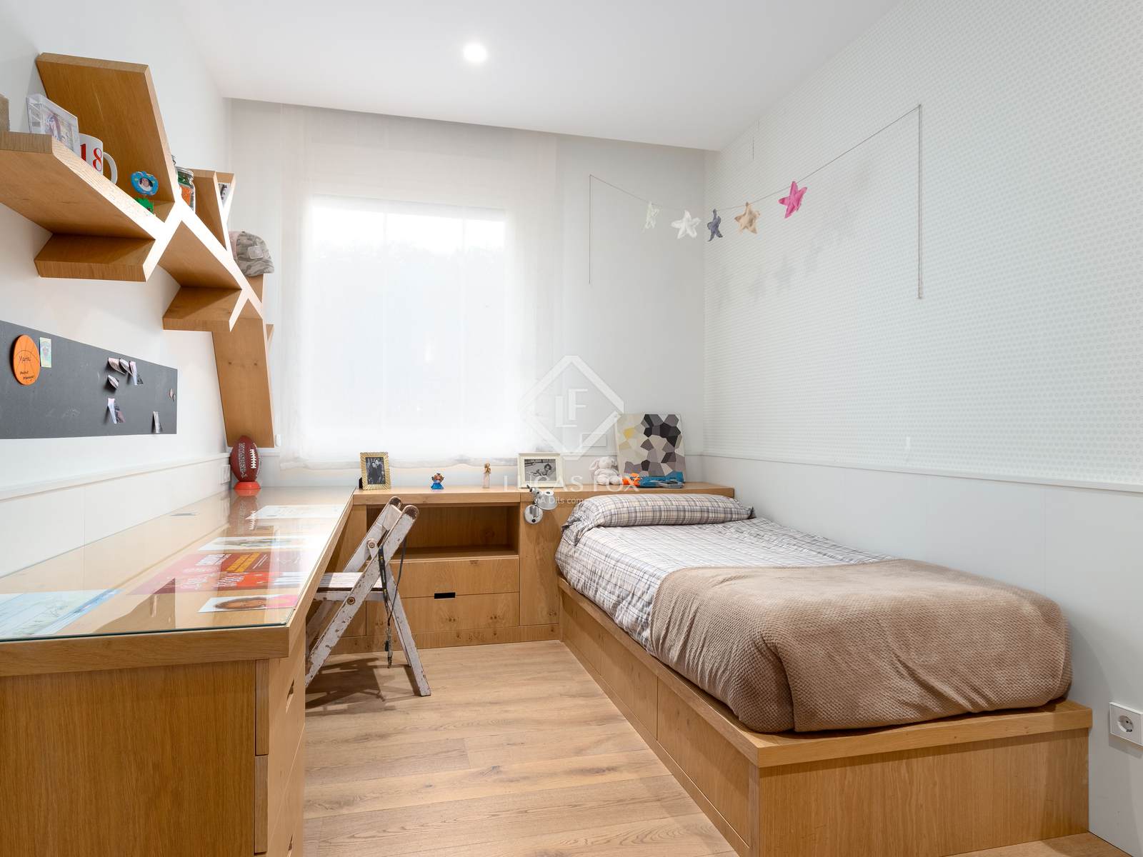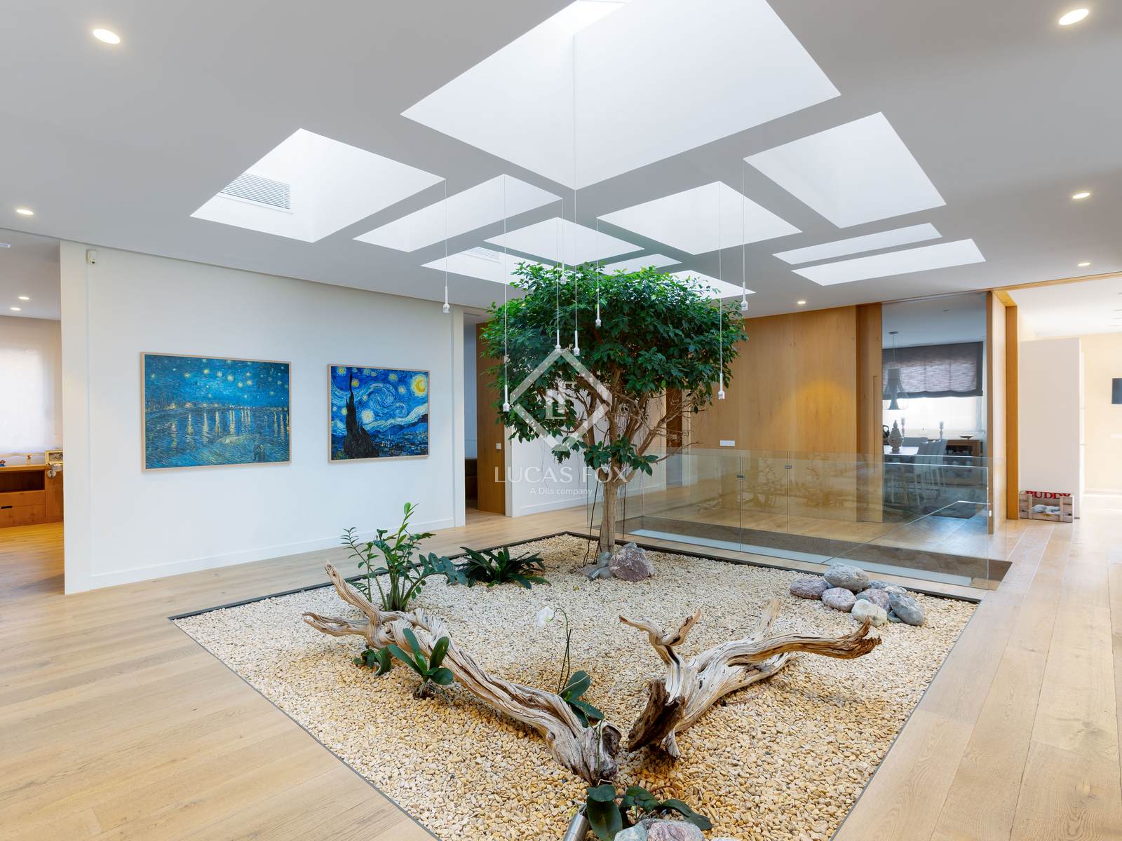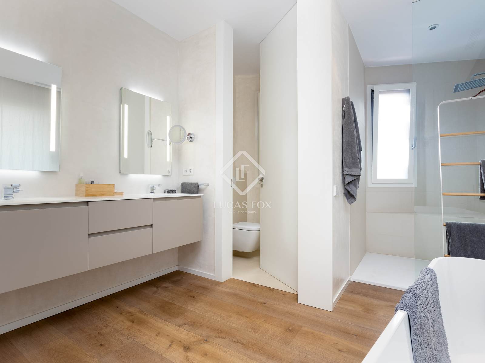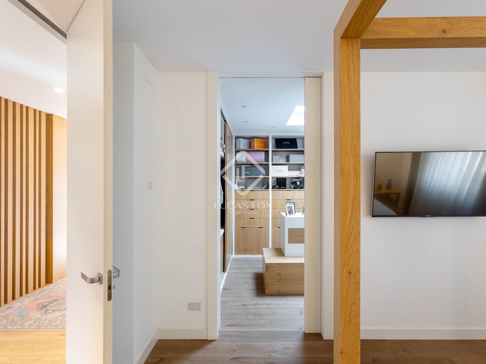 La lluminositat és un altre dels fils conductors de l'habitatge: els finestrals de fusteria Reynaers d'alta seguretat emmarquen l'exterior, inundant cada estança de llum natural i realçant la sensació d'amplitud. Els detalls constructius, com el parquet massís WINCO de 2,2 cm, les portes de terra a sostre o les aixetes Dornbracht, sumen qualitat i personalitat en cada ambient.