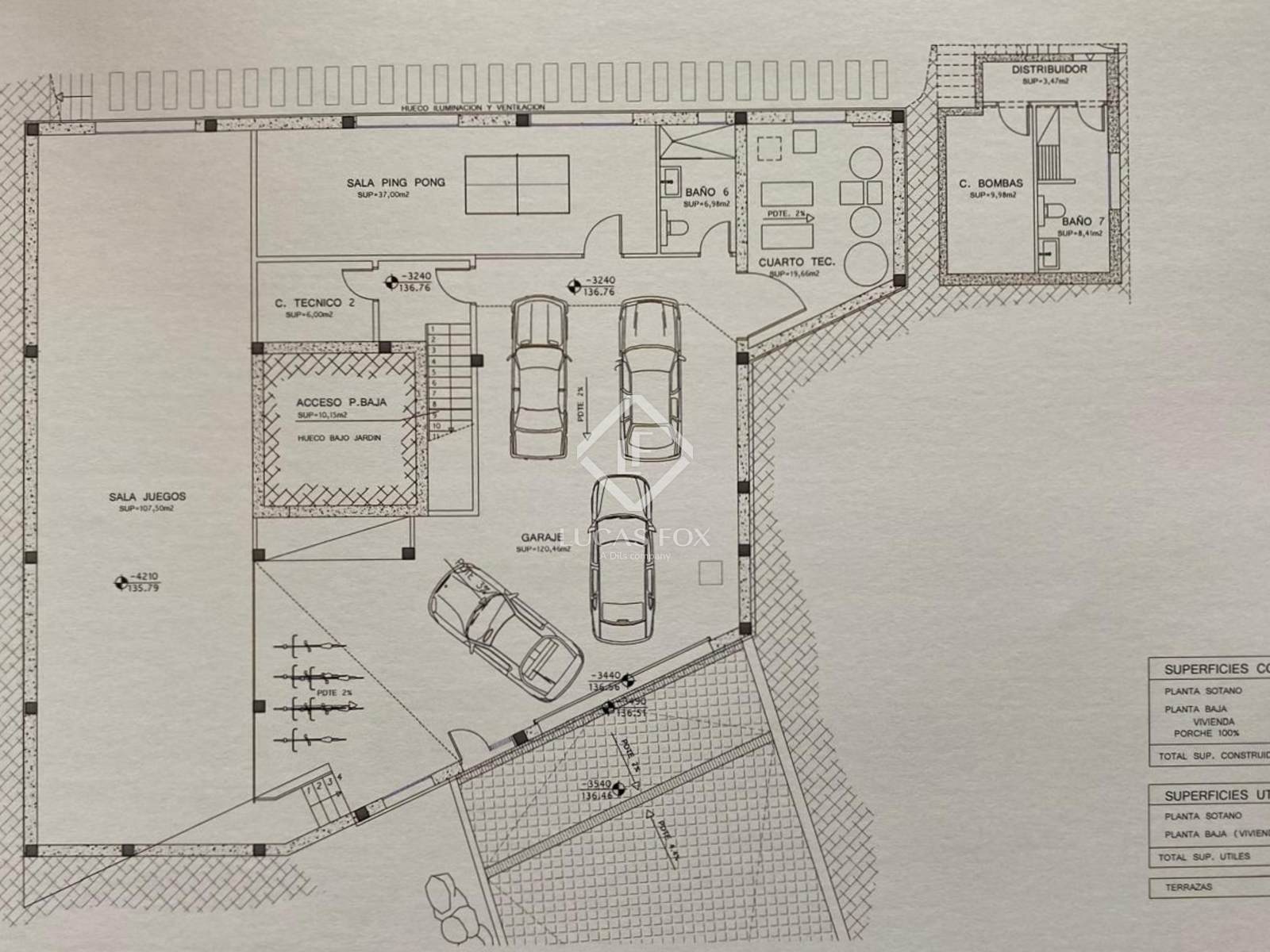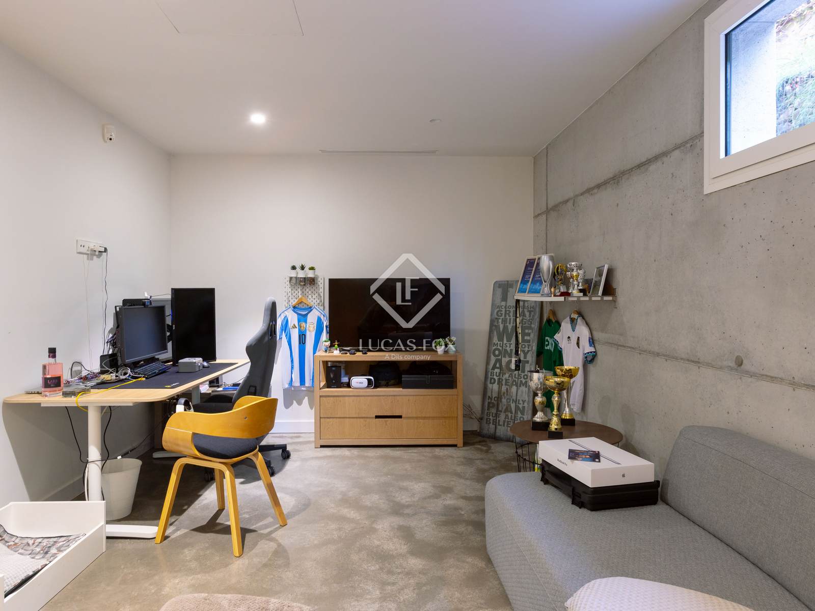 El nivell inferior de l'habitatge acull un complet espai de benestar i esbarjo, amb gimnàs, sala de jocs, pista esportiva polivalent interior i un ampli garatge, proporcionant funcionalitat i comoditat a una zona independent de la resta de la casa.
