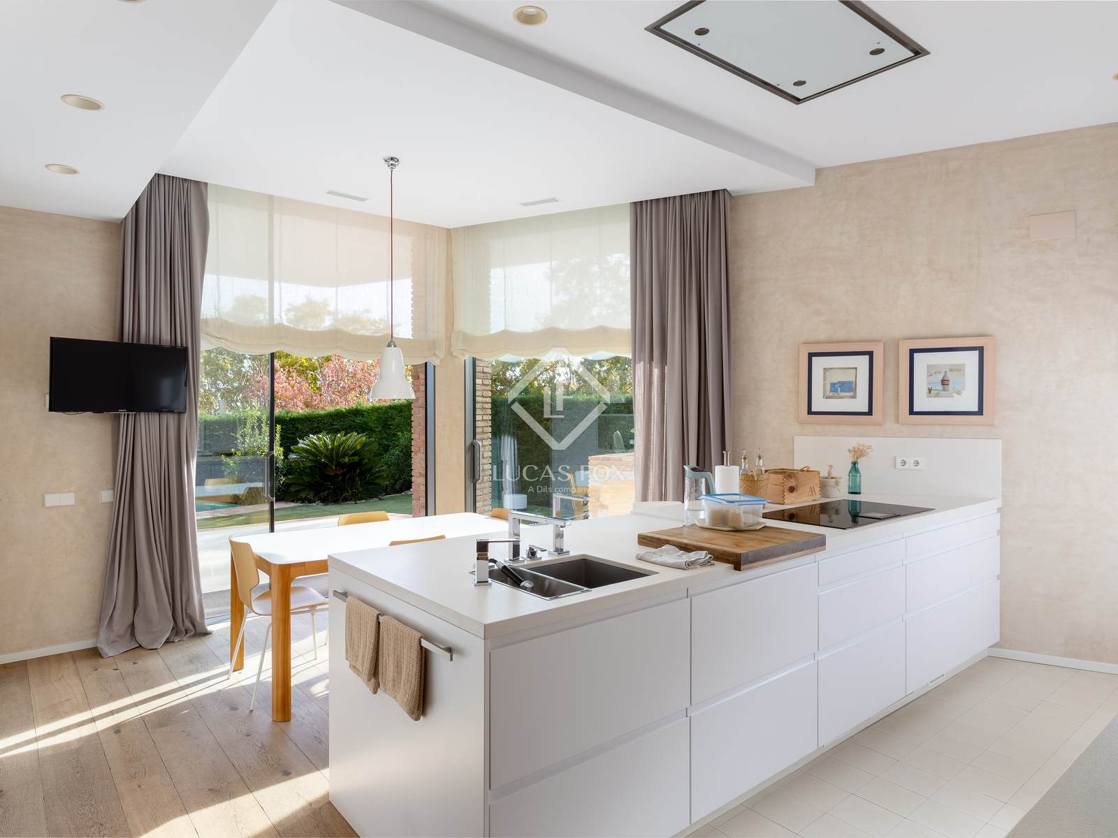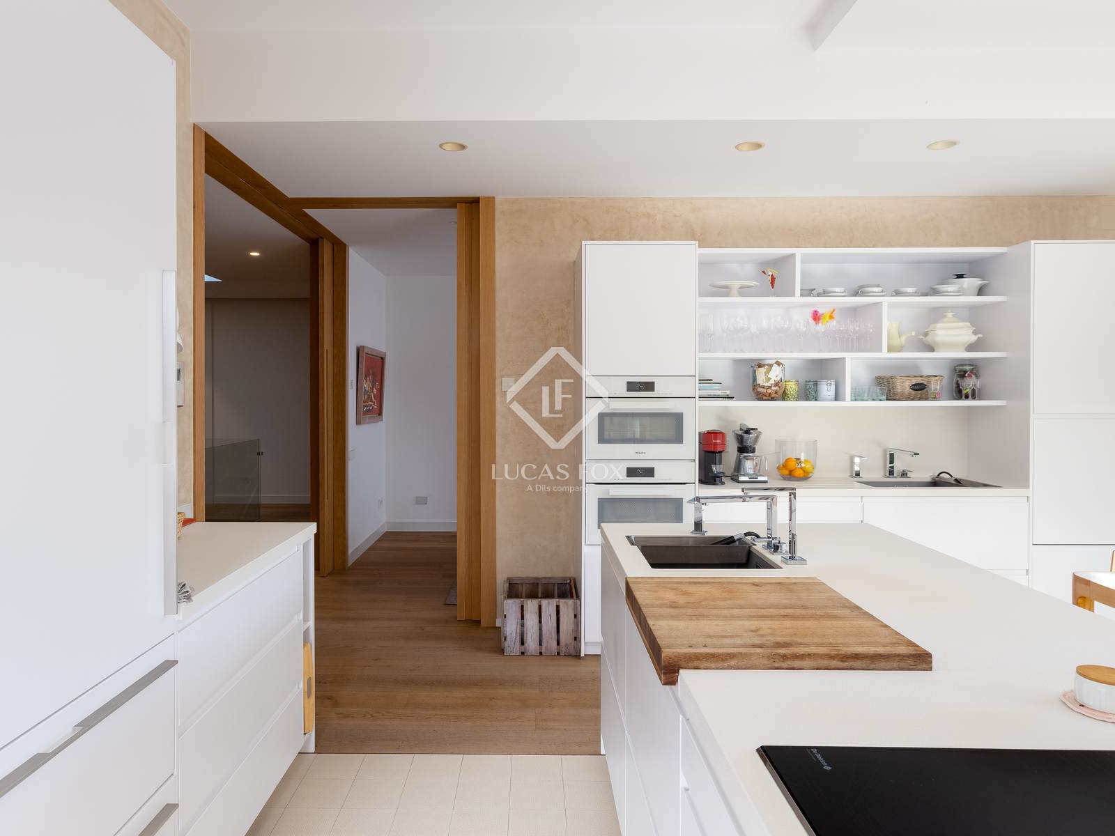 El cor de la casa és una cuina de disseny Leicht, equipada amb electrodomèstics Miele i concebuda com a autèntic espai culinari. La seva amplitud i funcionalitat la converteixen en un lloc ideal tant pel dia a dia com pels que gaudeixen cuinant amb detall.