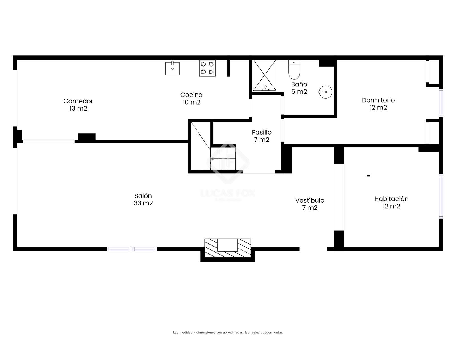 A la planta principal, trobem un ampli i lluminós saló-menjador amb llar de foc, on la reforma ha conservat les bigues de fusta originals, afegint-hi un ambient càlid i acollidor. També hi ha un petit espai addicional que es podria convertir fàcilment en un altre dormitori. El saló-menjador connecta directament amb una cuina americana totalment equipada. Aquesta planta també inclou un bany complet amb dutxa i un dormitori doble amb armaris encastats i llum natural, amb vistes al porxo davanter.
