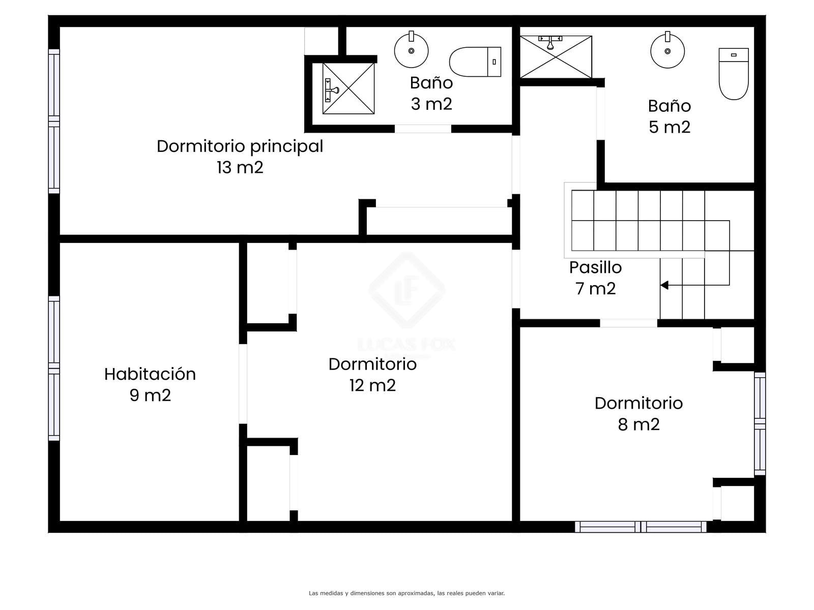 Una còmoda escala condueix des de la sala d'estar-menjador fins a la planta superior, on es troben els dormitoris. Aquesta planta disposa d'una habitació individual i dues habitacions dobles amb armaris encastats, una de les quals és un espaiós bany privat. Un segon bany complet completa aquesta planta lluminosa i espaiosa.