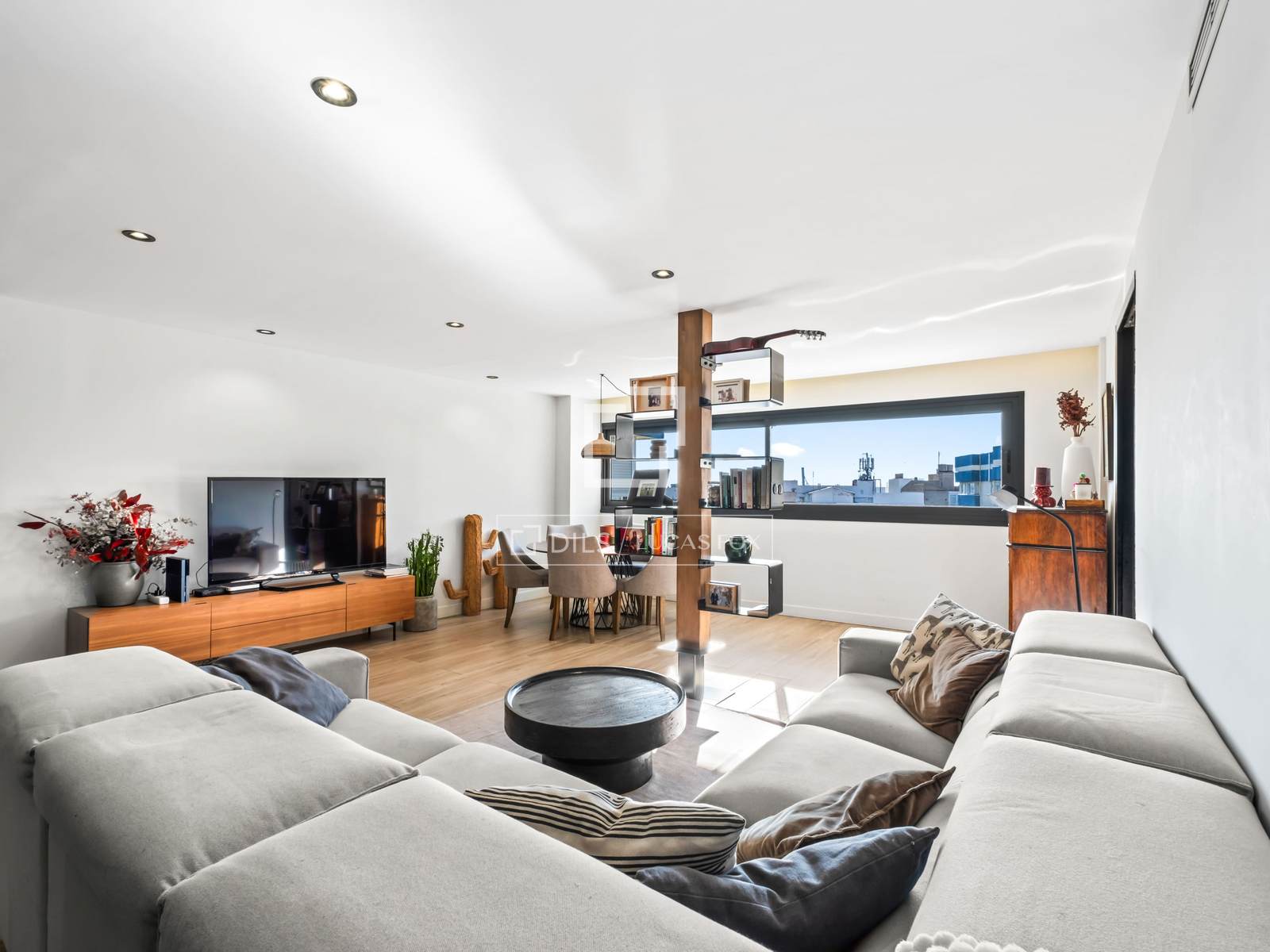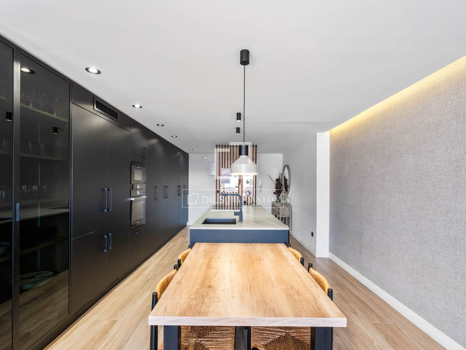 L´àrea social de l´habitatge s´articula al voltant d´un impressionant saló-menjador amb cuina integrada d´aproximadament 60 m², un espai diàfan, sofisticat i perfectament dissenyat per al gaudi diari i per rebre convidats en un entorn modern i acollidor.