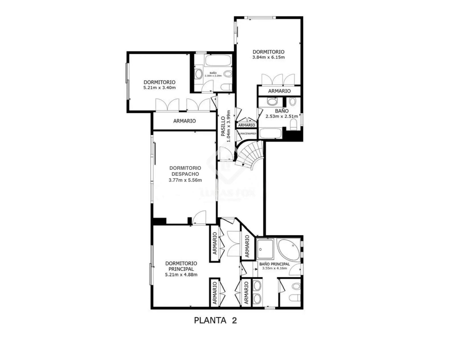 A la planta principal, hi ha un ampli rebedor de doble alçada, dos salons (un amb llar de foc i biblioteca), una gran cuina que està comunicada amb el menjador i el porxo, un lavabo de cortesia i un dormitori de convidats amb bany privat.