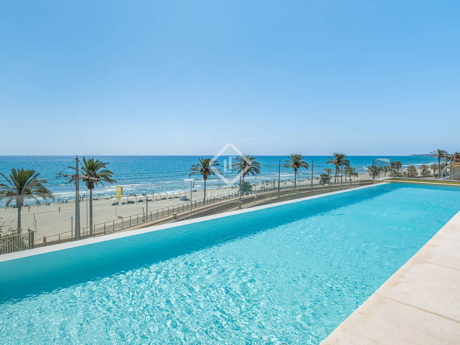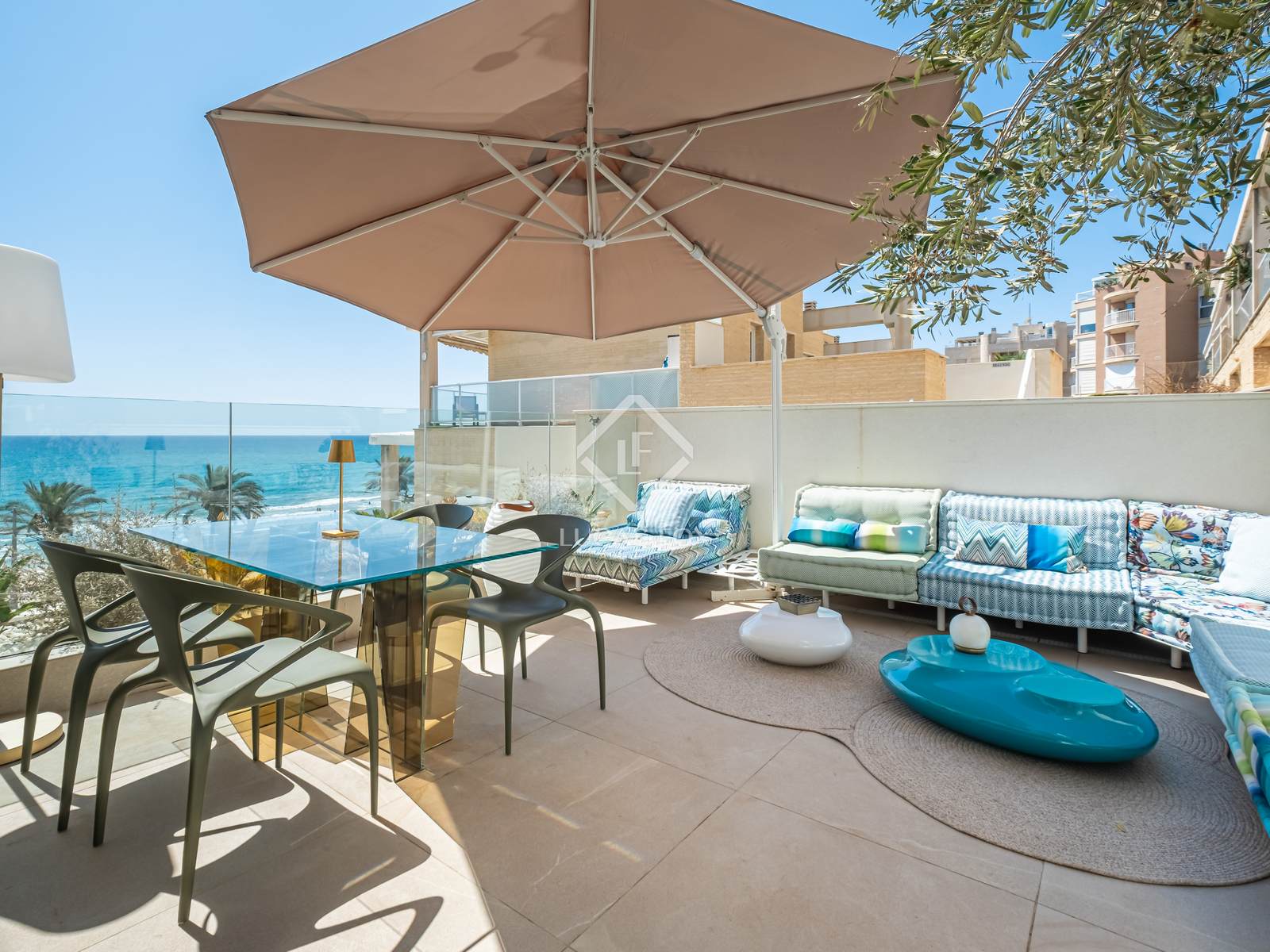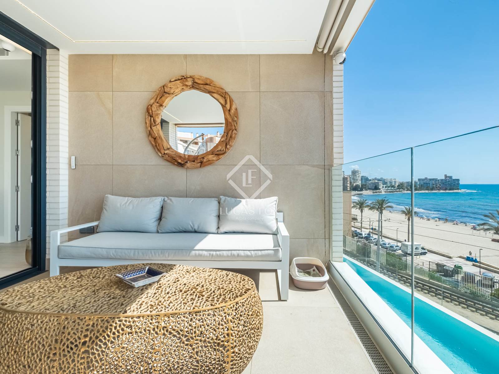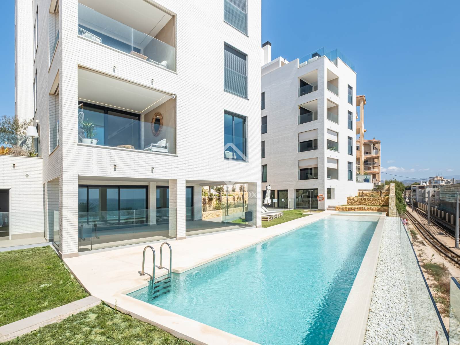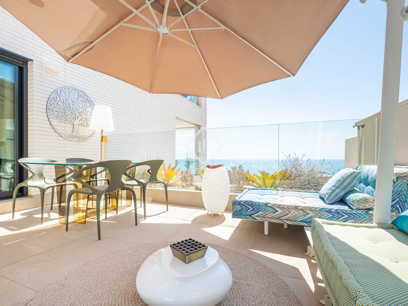 Modern apartament davant del mar amb impressionants vistes al Mediterrani, situat en una residència exclusiva de només 24 habitatges. La propietat ofereix 110 m² de superfície habitable lluminosa, dues terrasses (una coberta i una chill-out), un ampli saló-menjador, cuina Bosch de planta oberta,