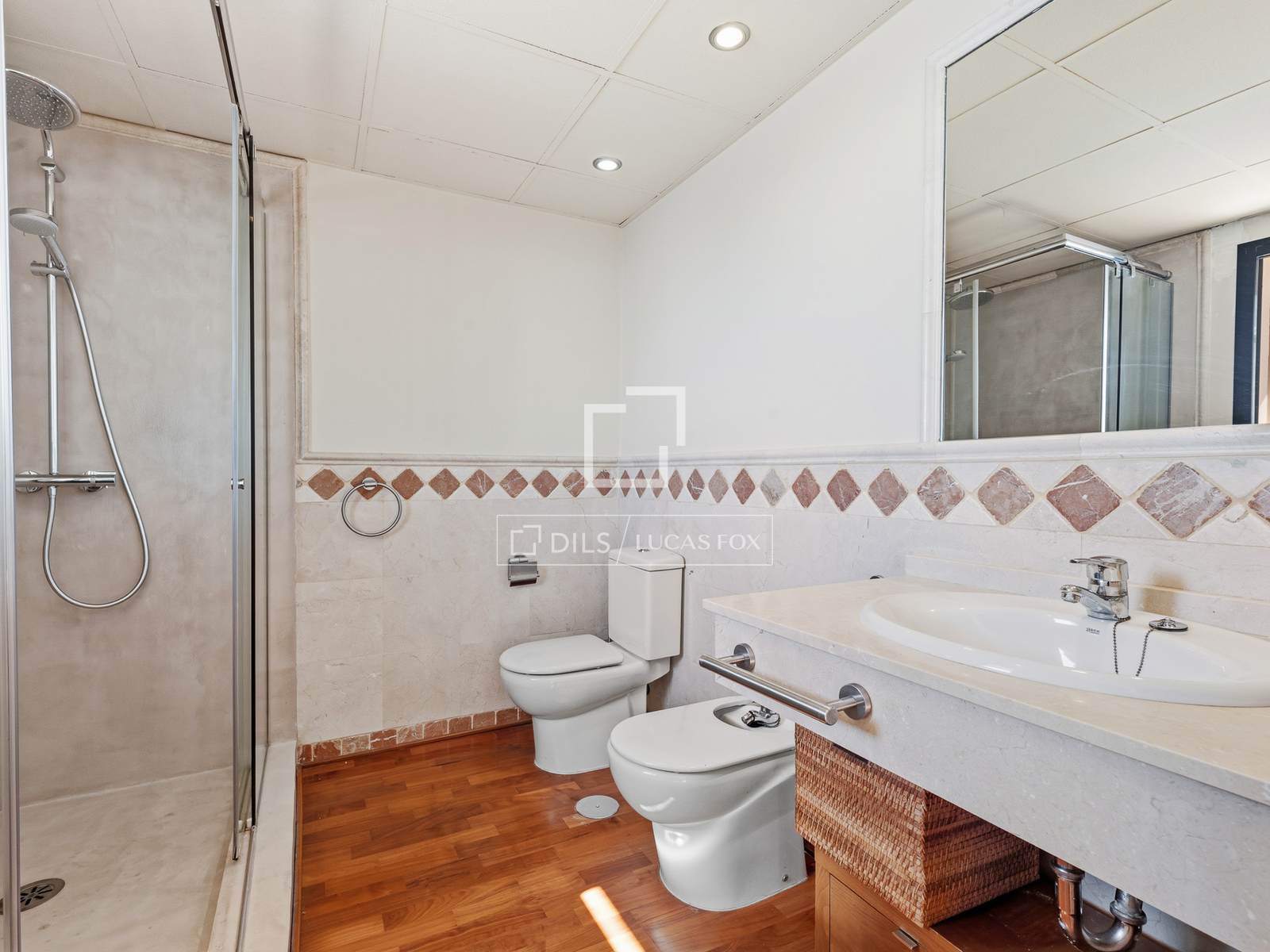 A la planta intermèdia se situa la zona de descans, amb el dormitori principal que disposa de vestidor, bany en suite i accés a la terrassa privada. Un segon dormitori amb vestidor i un bany addicional completen aquesta planta, aportant comoditat i una distribució equilibrada pel dia a dia.