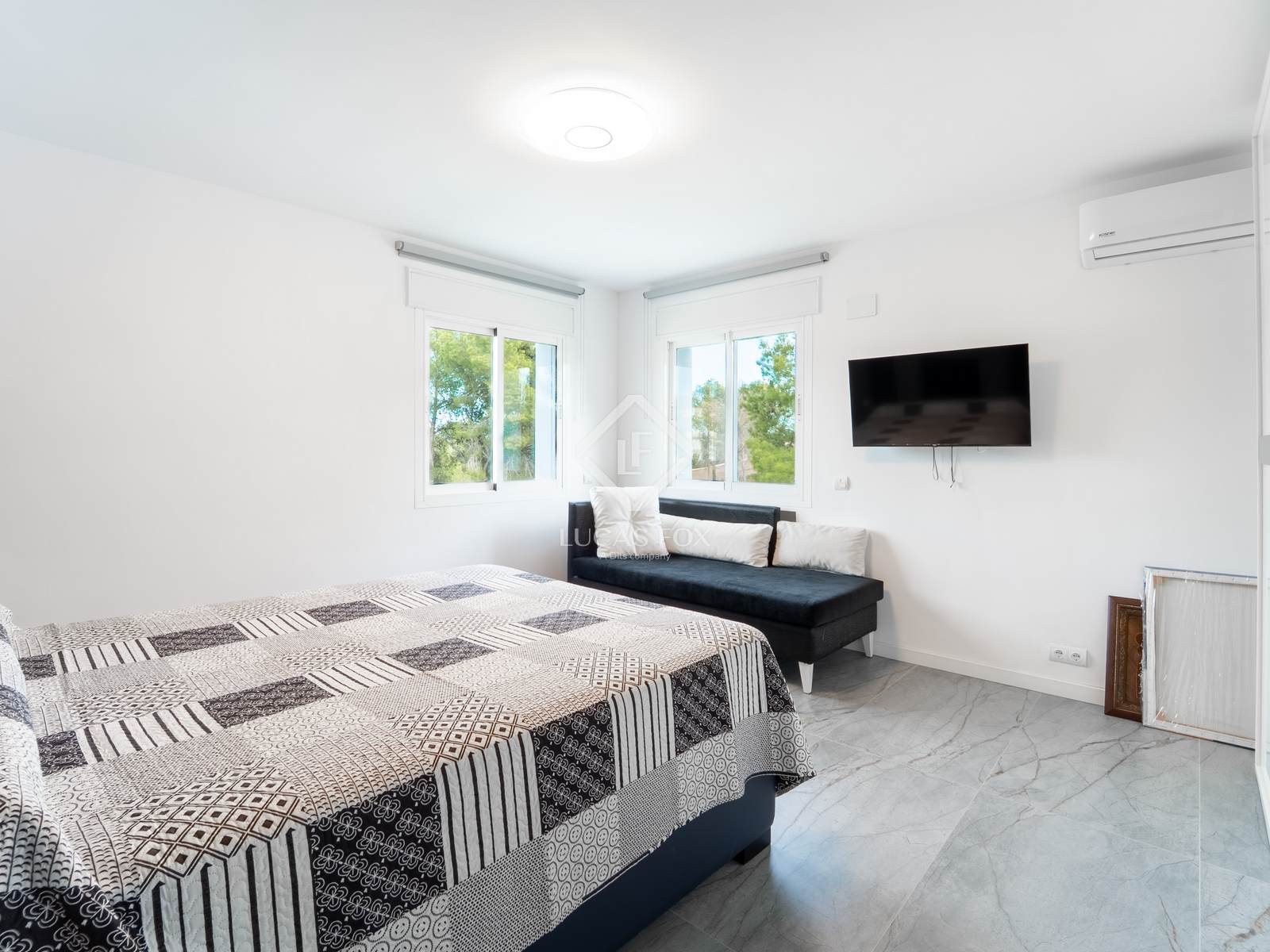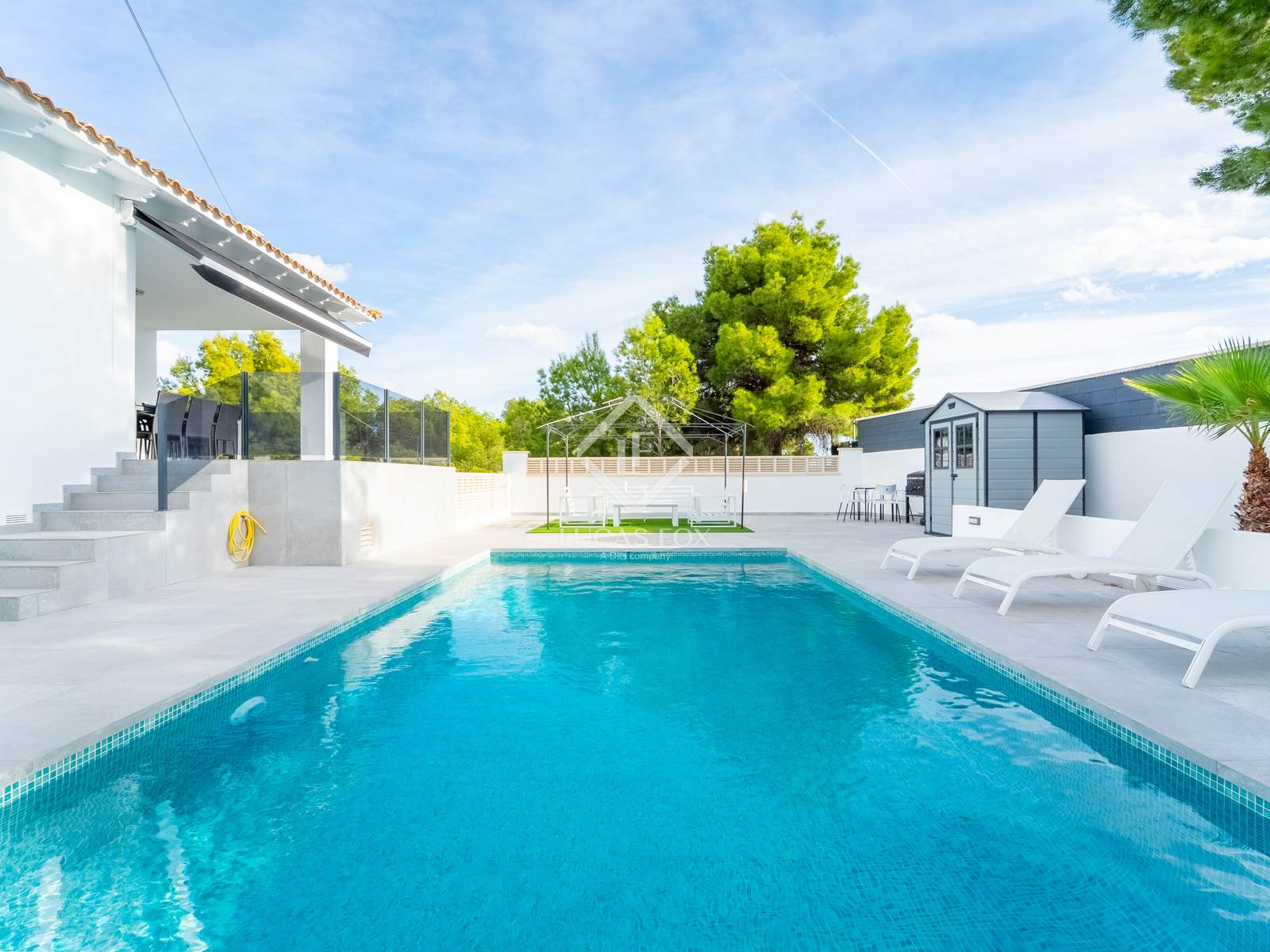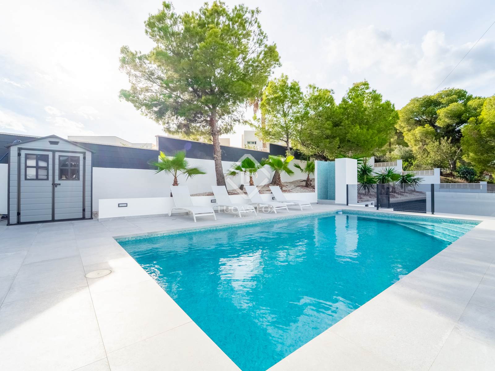 La zona exterior ofereix una gran piscina privada, àrea de barbacoa i múltiples racons per relaxar-se. Al terrat, el solàrium regala vistes panoràmiques espectaculars que converteixen cada capvespre en un moment especial.