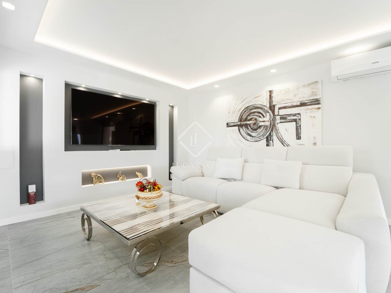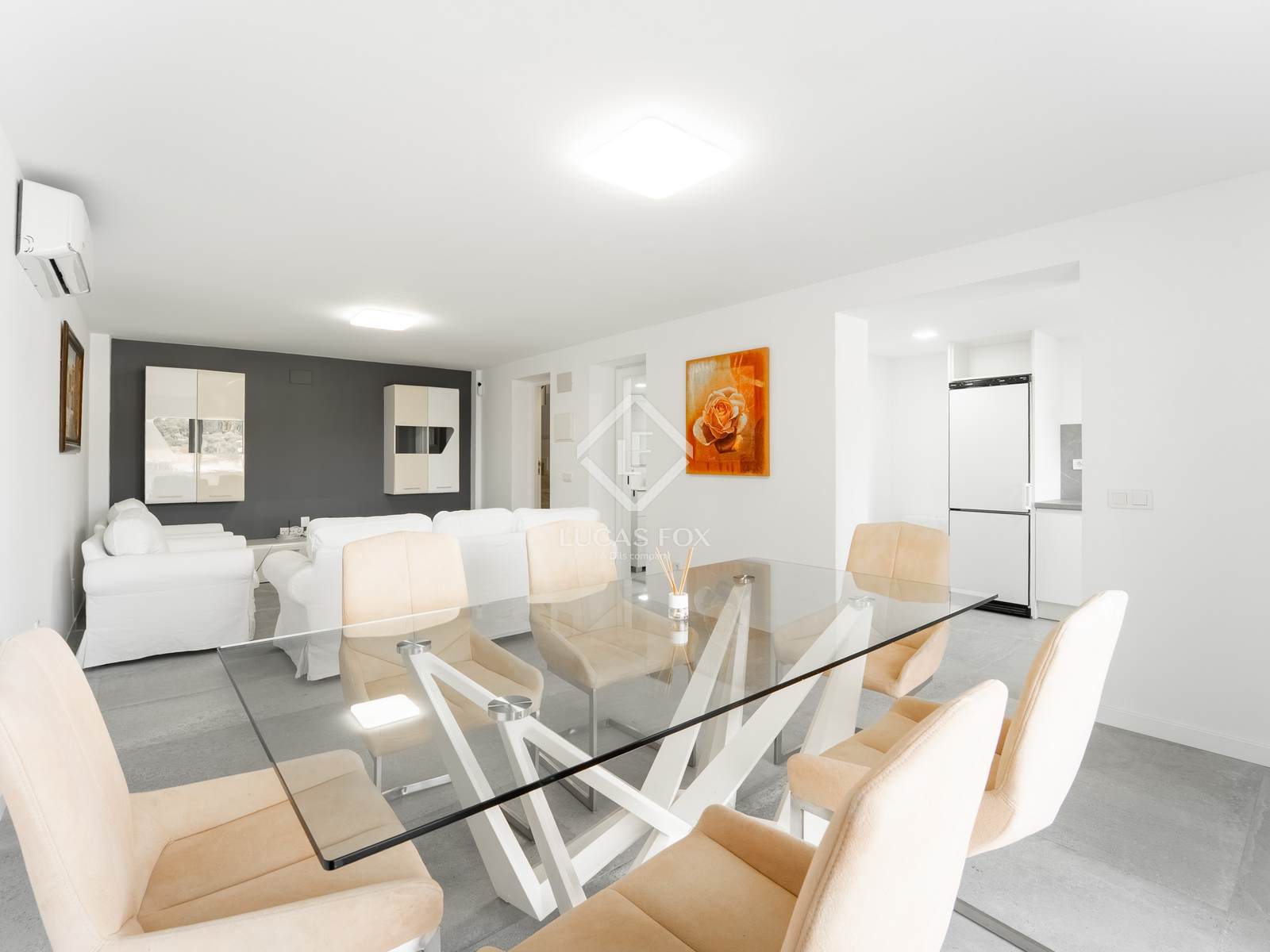L'habitatge, completament actualitzat, destaca per les línies elegants, espais oberts i grans finestrals que integren a la perfecció les zones interiors amb les àmplies terrasses i els espais exteriors. La distribució s´organitza en tres plantes principals més un magnífic solàrium superior.