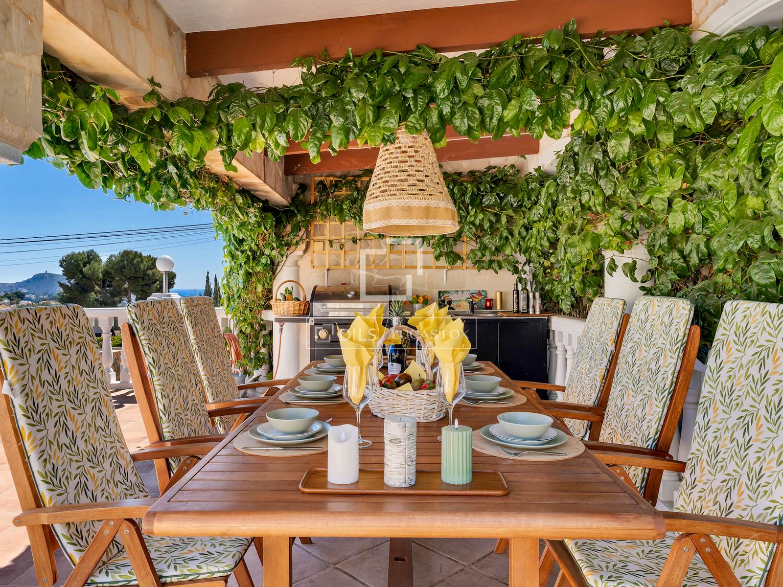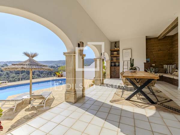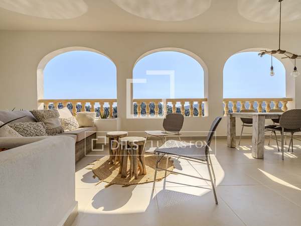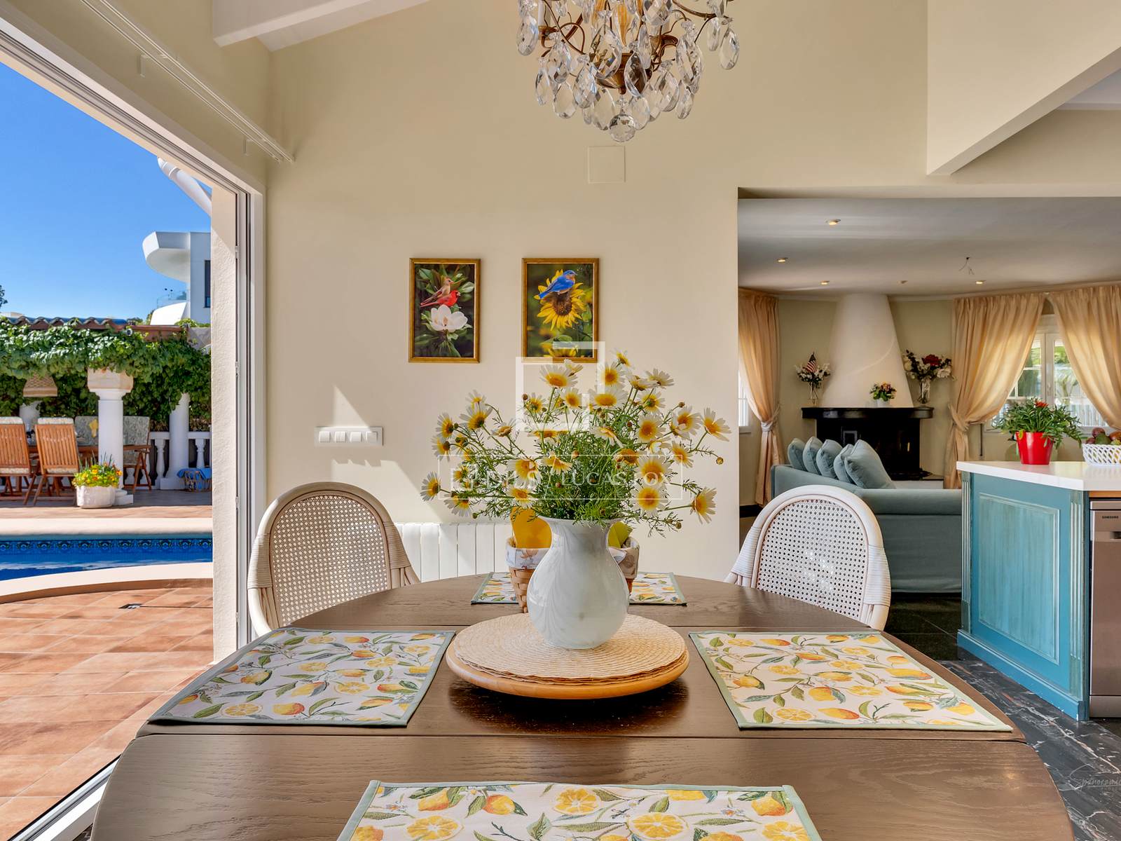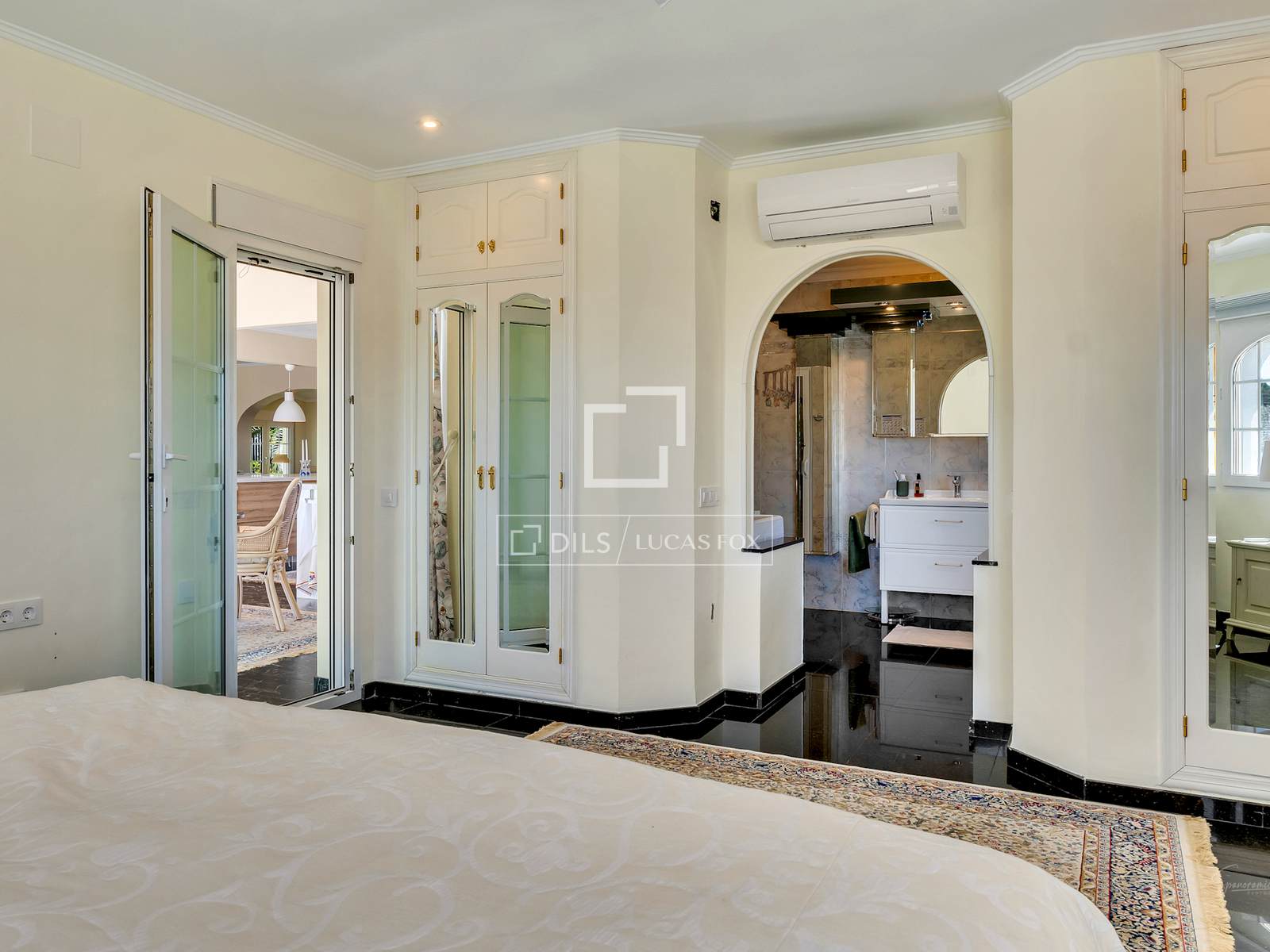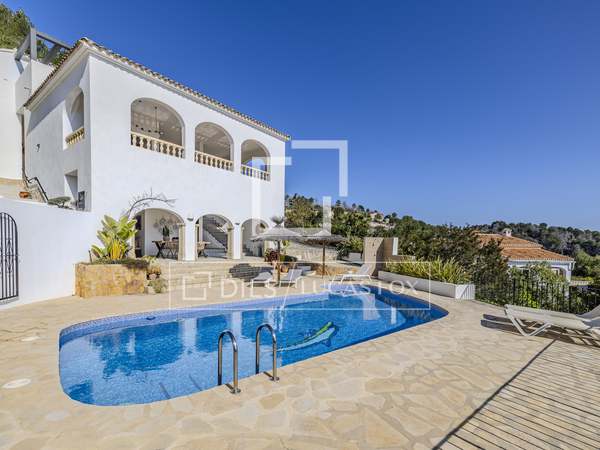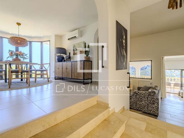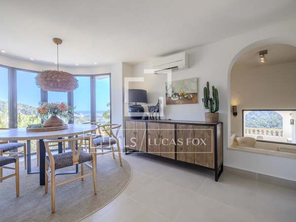 Experimenta la refinada vida mediterrània en aquesta vila bellament reimaginada a Moraira, on l'elegància contemporània es troba amb l'encant costaner atemporal. Situada en una parcel·la cantonera generosa i assolellada en un prestigiós enclavament residencial, la propietat ofereix unes vistes panoràmiques impressionants sobre el mar resplendent, un teló de fons en constant canvi que defineix cada moment aquí.