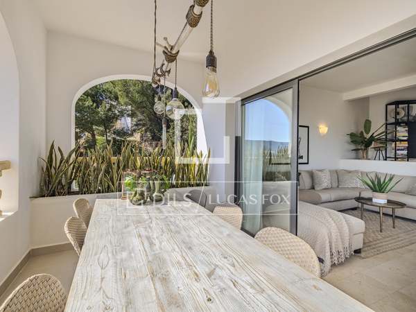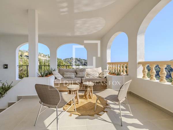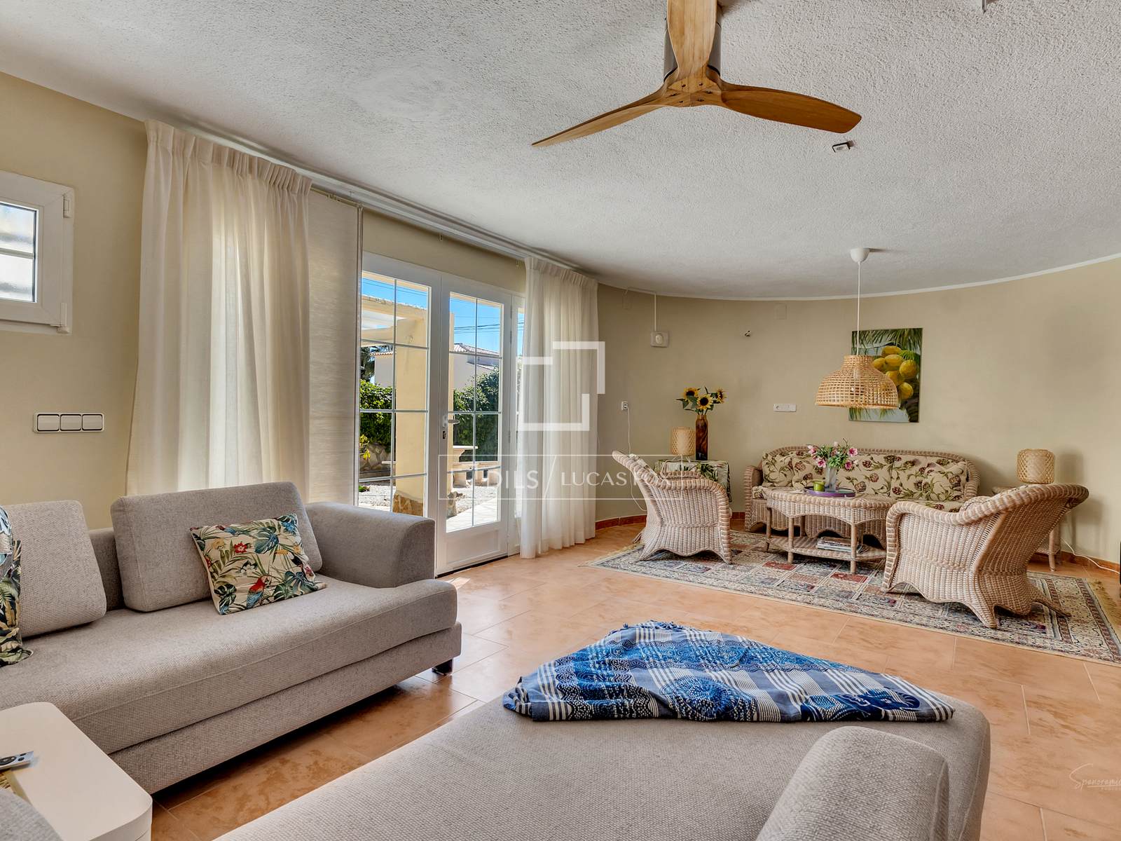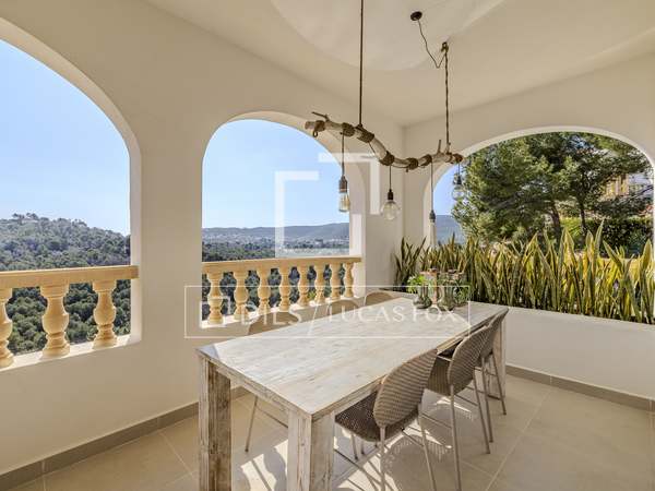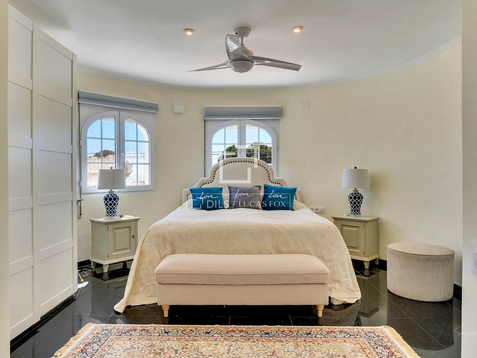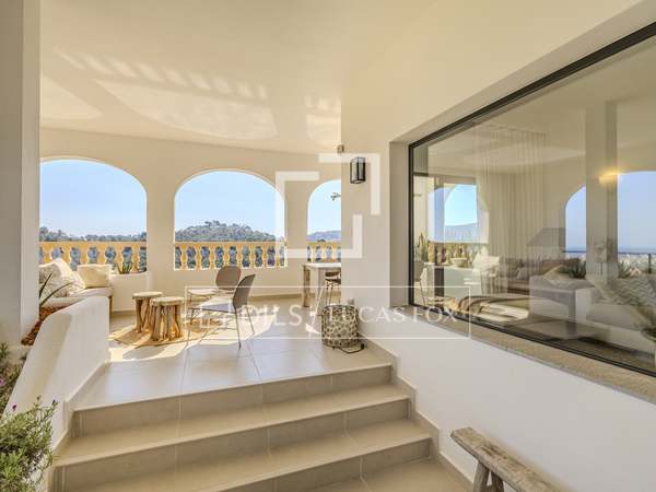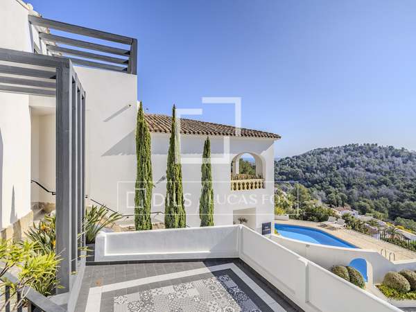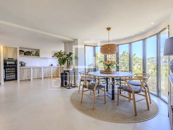 Experimenta la refinada vida mediterrània en aquesta vila bellament reimaginada a Moraira, on l'elegància contemporània es troba amb l'encant costaner atemporal. Situada en una parcel·la cantonera generosa i assolellada en un prestigiós enclavament residencial, la propietat ofereix unes vistes panoràmiques impressionants sobre el mar resplendent, un teló de fons en constant canvi que defineix cada moment aquí.