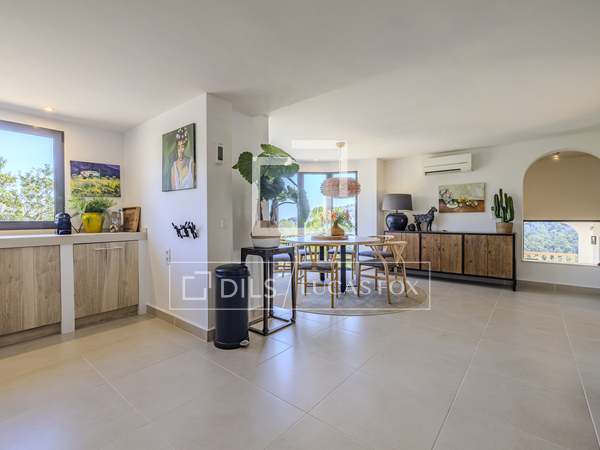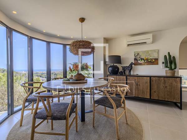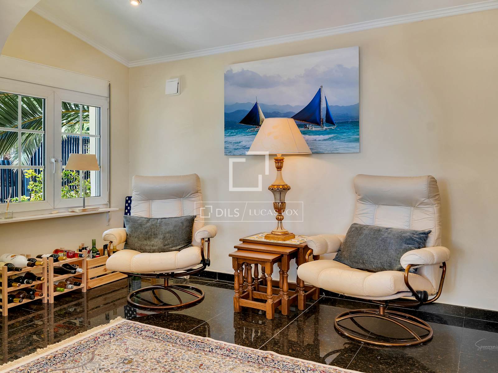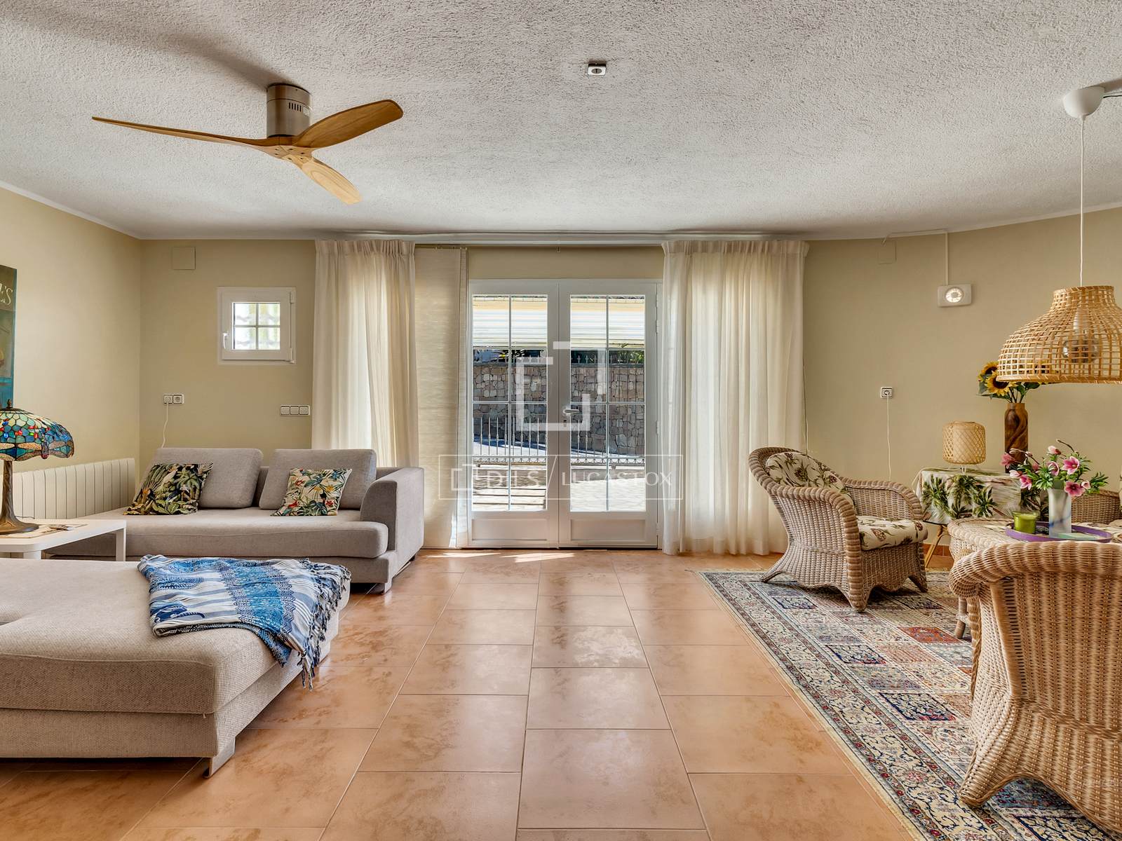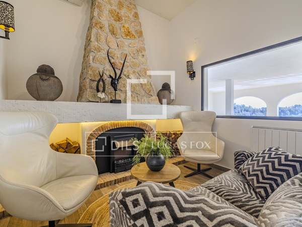 Redissenyada amb cura i acabada amb un alt nivell, la vil·la està distribuïda en dos nivells, oferint estil i versatilitat. La sala d'estar principal és lluminosa i acollidora, centrada al voltant d'una acollidora xemeneia que crea l'entorn perfecte per a vetllades relaxades. Els grans finestrals conviden a la llum natural, millorant la sensació d'obertura i connexió amb el paisatge circumdant.