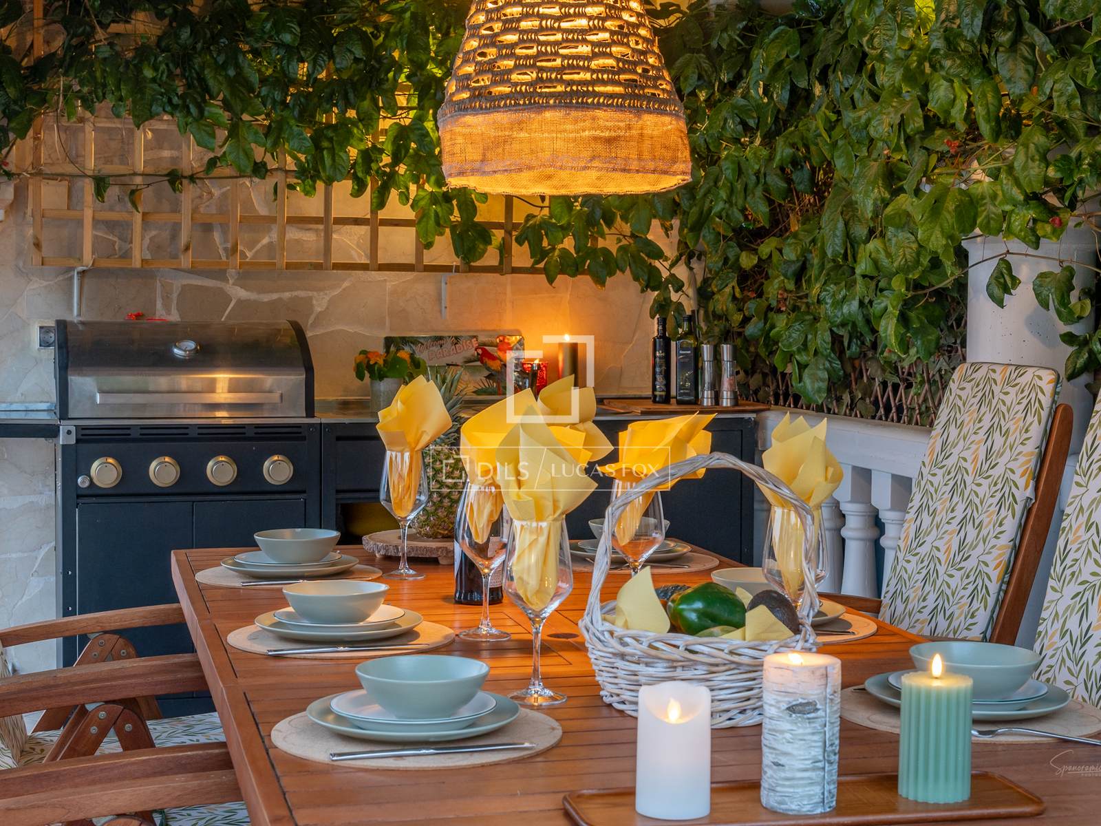 Sortiu a l'exterior i la vil·la revelarà la seva veritable essència com a santuari mediterrani. La piscina d'aigua salada està envoltada d'un jardí preciós, que ofereix privacitat i serenitat. Una cuina exterior totalment equipada i una zona de menjador creen l'entorn perfecte per a entreteniments a l'aire lliure, on els llargs dies assolellats es transformen sense esforç en nits càlides i relaxades.