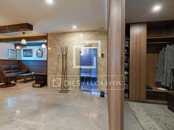 A la planta superior, hi ha el rebedor principal, coronat per una imponent claraboia piramidal que inunda l'espai de llum natural.