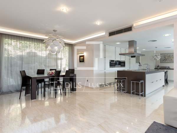 A la planta inferior, se situen les zones de dia: un ampli saló principal, menjador, cuina oberta, safareig i lavabo de cortesia. També hi ha tres dormitoris que comparteixen un bany complet.