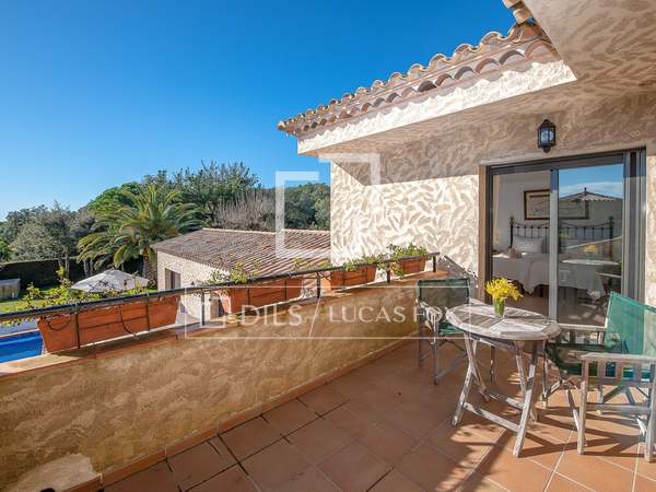 Casa de pedra de 217 m² en venda a la urbanització Can Manel de Castell d'Aro, en una àmplia parcel·la de 2.188 m² amb un jardí encantador, una terrassa amb vistes al mar i un interior acollidor amb arc de pedra. Potencial de construcció addicional.