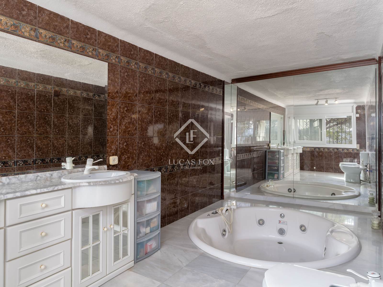 A l'exterior, l'espaiós jardí ofereix innombrables espais per a l'oci i la relaxació, complementats per una gran piscina privada, un garatge doble amb carregadors per a vehicles elèctrics, una porta automàtica i un mur de pedra al carrer que ofereix més privadesa. La vila disposa a més de tres trasters, incloent-hi un sota la piscina.
