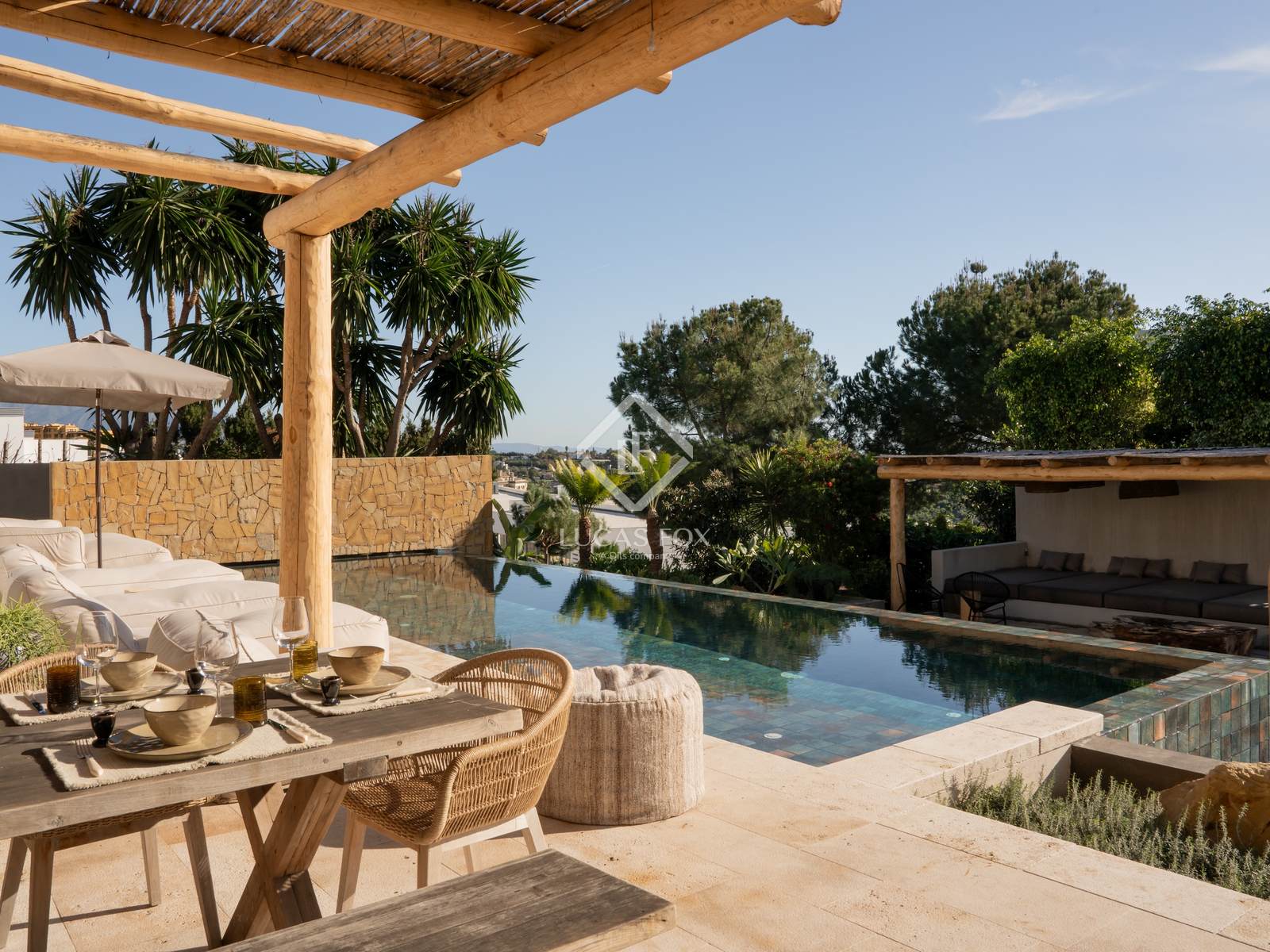 Villa Prana és una vil·la reformada amb piscina infinita climatitzada, jardins madurs i cinc dormitoris en dos nivells, situada a la tranquil·la zona residencial de Selwo, Estepona.