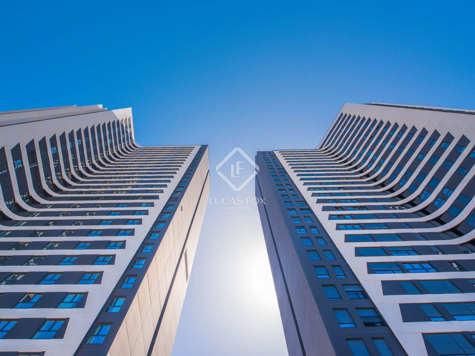 Últim pis de 2 dormitoris i 2 banys, amb orientació est, piscina, garatge, traster i vistes immillorables en venda a la torre sud d'AQ Urban Sky, Màlaga.
