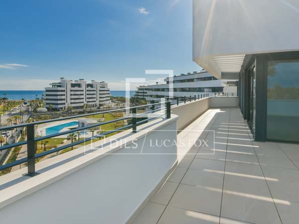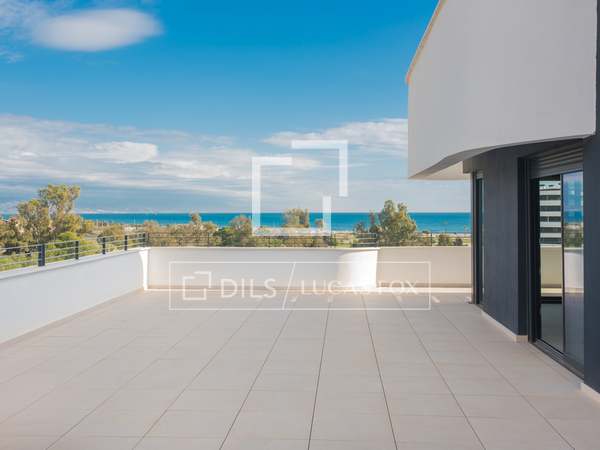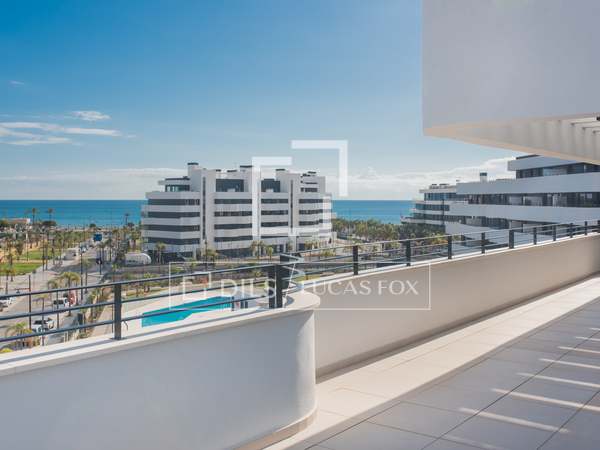 Àtic de 3 habitacions dos banys primera línia de platja, piscina comunitària, piscina coberta, dues places de garatge i traster. Molt bé comunicat.