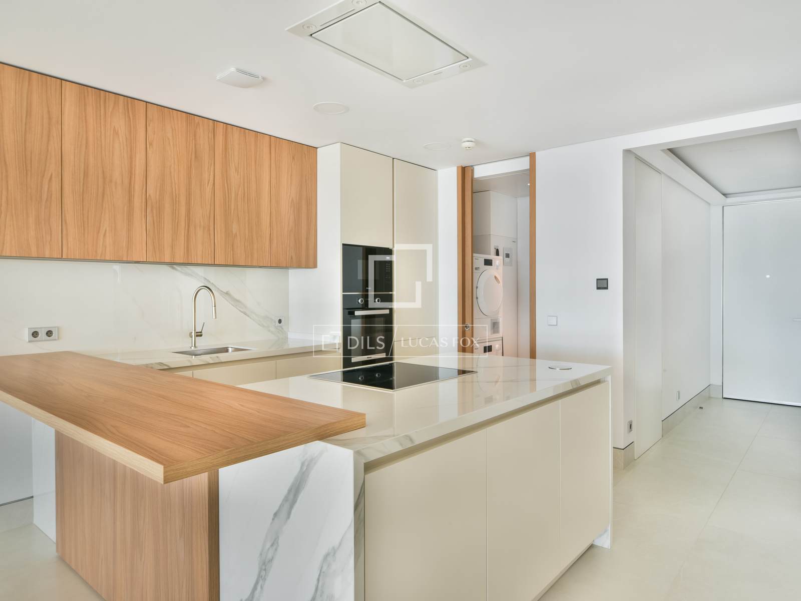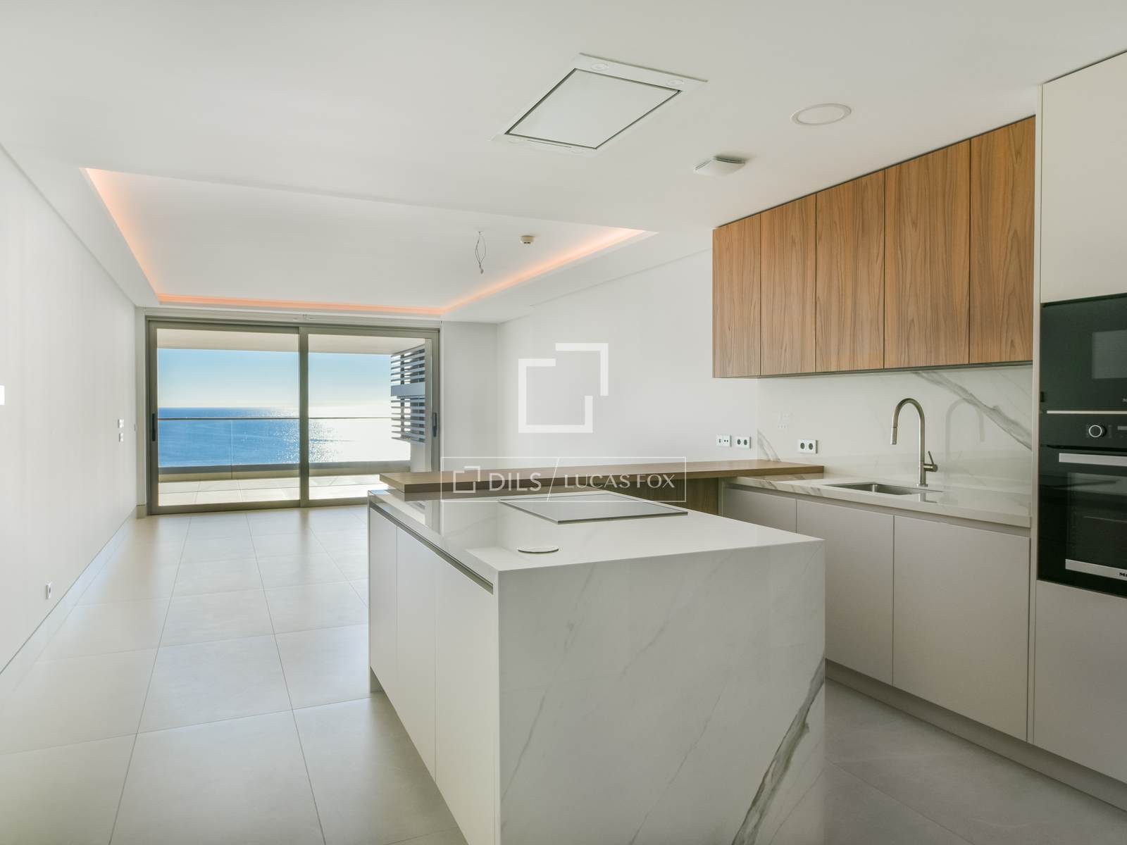 L'interior de l'habitatge ha estat dissenyat per maximitzar la lluminositat i connexió amb l'entorn. El saló-menjador, ampli i diàfan, s'obre directament cap a l'exterior mitjançant grans finestrals de terra a sostre que permeten que la llum natural inundi l'espai durant tot el dia. La cuina, completament equipada i de concepte obert, s'integra de manera elegant a la zona de dia, creant un ambient modern i funcional perfecte tant pel dia a dia com per rebre convidats.