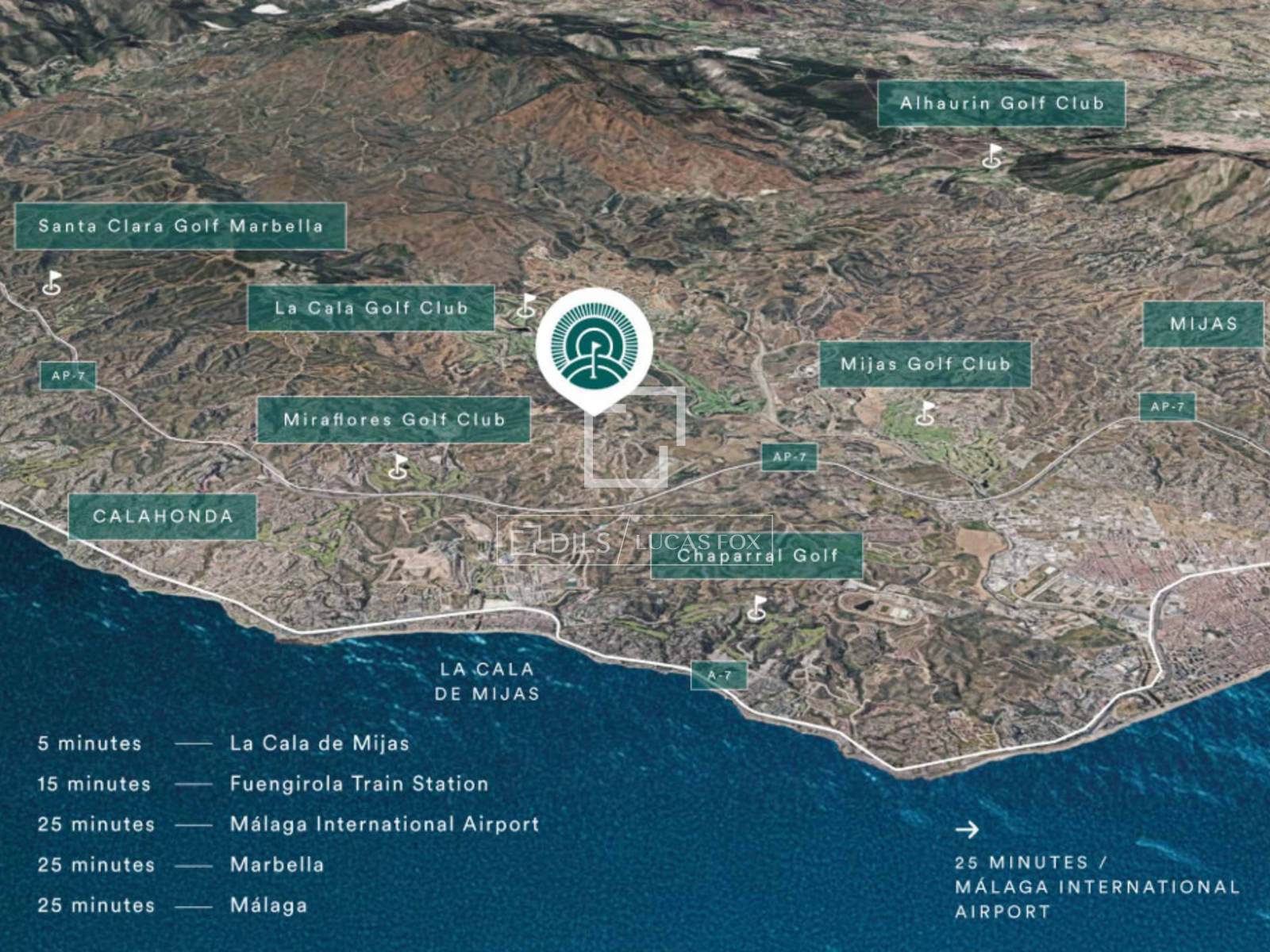 Situat dins del famós complex de golf La Cala, que acull tres camps de campionat de 18 forats, la urbanització està envoltada de bellesa natural i serveis a l'aire lliure. Les platges i els serveis de La Cala de Mijas es troben a uns deu minuts amb cotxe, cosa que ofereix un accés còmode a l'estil de vida de la Costa del Sol.