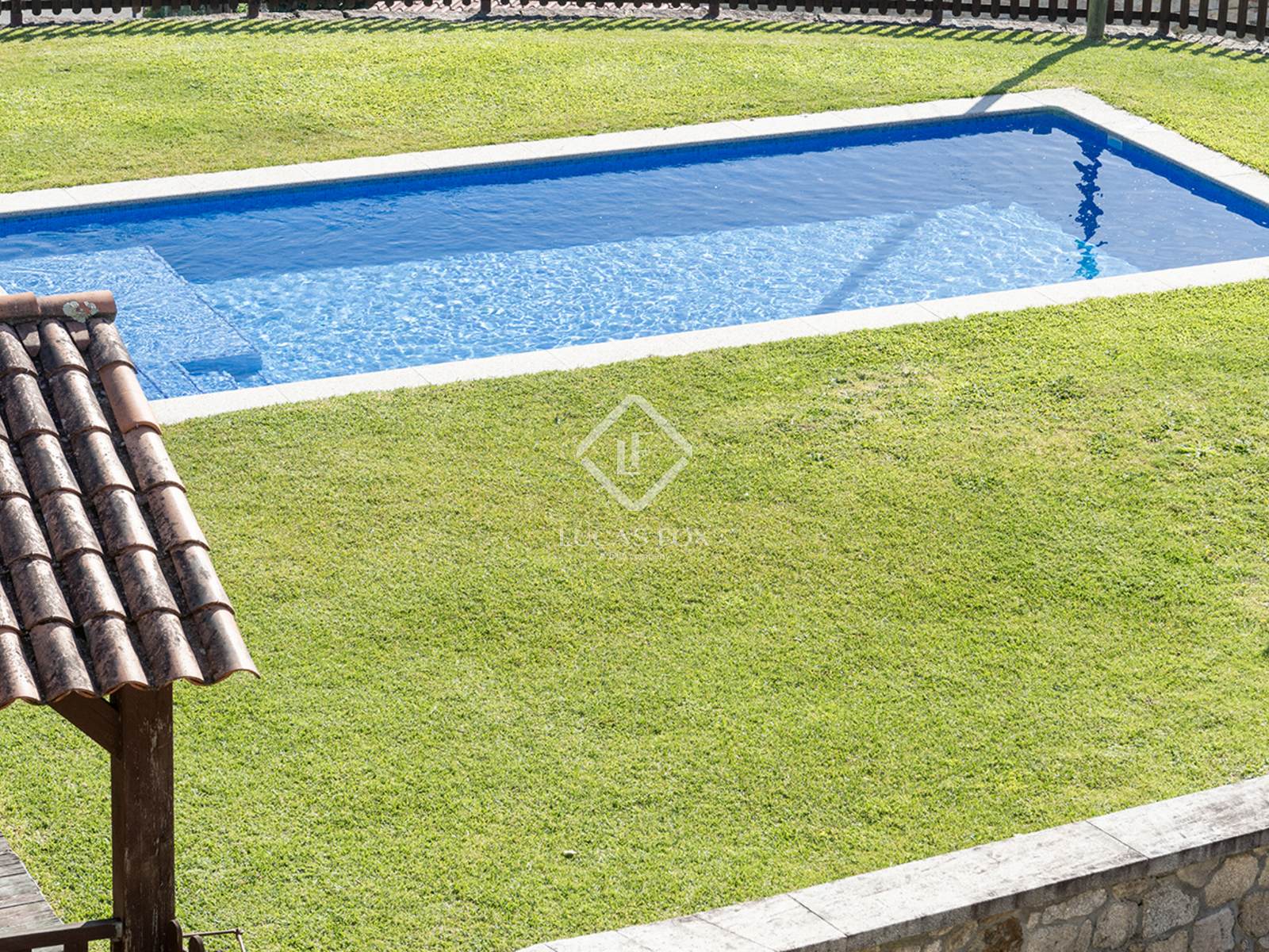 La parcel·la és molt gran i majoritàriament plana, tot i que hi ha zones elevades on pasturen les cabres dels propietaris. En una gran secció adossada hi ha una piscina que gaudeix de vistes gairebé 360º sobre el camp dels voltants.