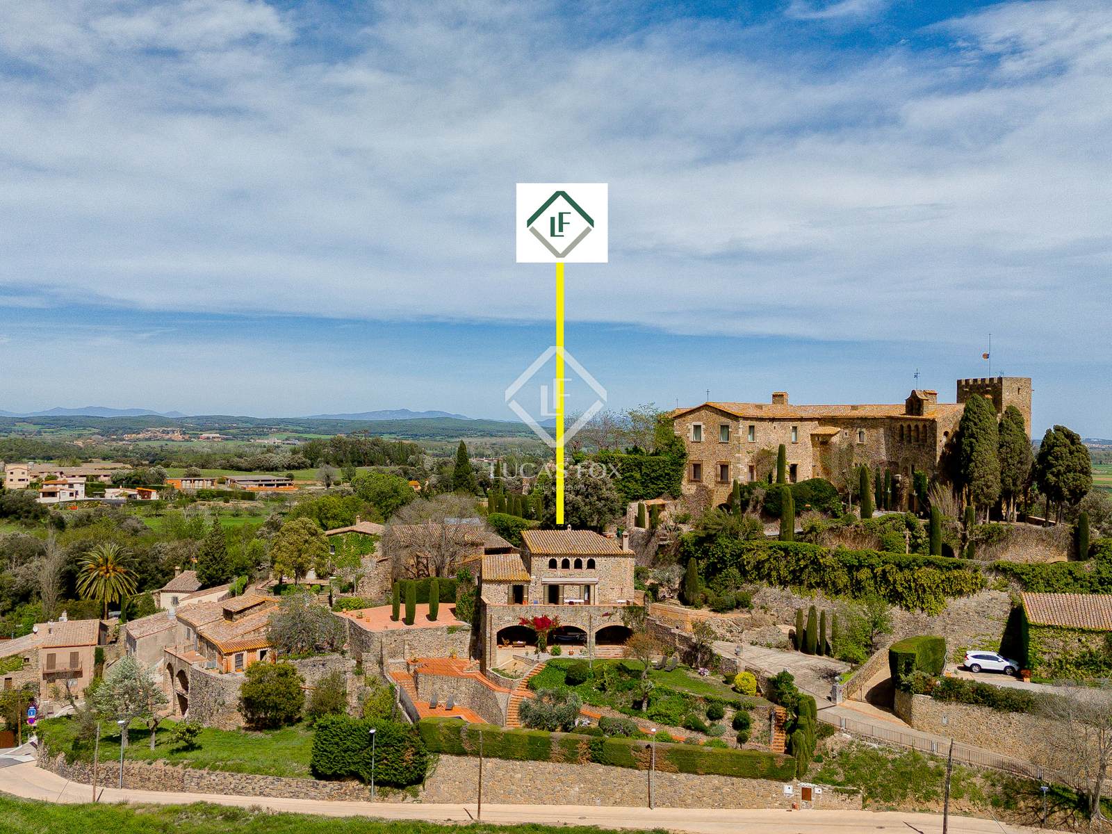 Històrica casa de pedra del segle XIV situada als peus del castell de Foixà, amb jardí privat i vistes al camp de venda a Baix Empordà, Girona.