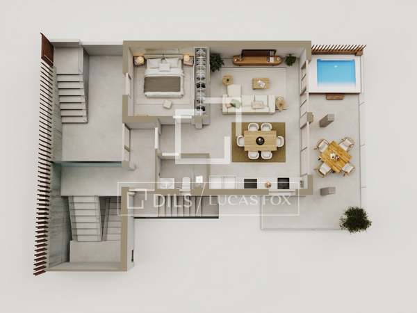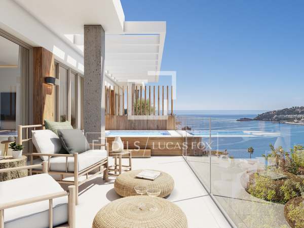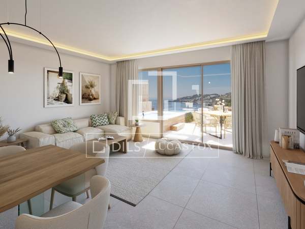 Aquesta casa està distribuïda en tres nivells lluminosos amb grans finestrals que ofereixen vistes a la costa i al mar. La propietat inclou un solàrium privat i una piscina, i l'opció d'afegir un soterrani.