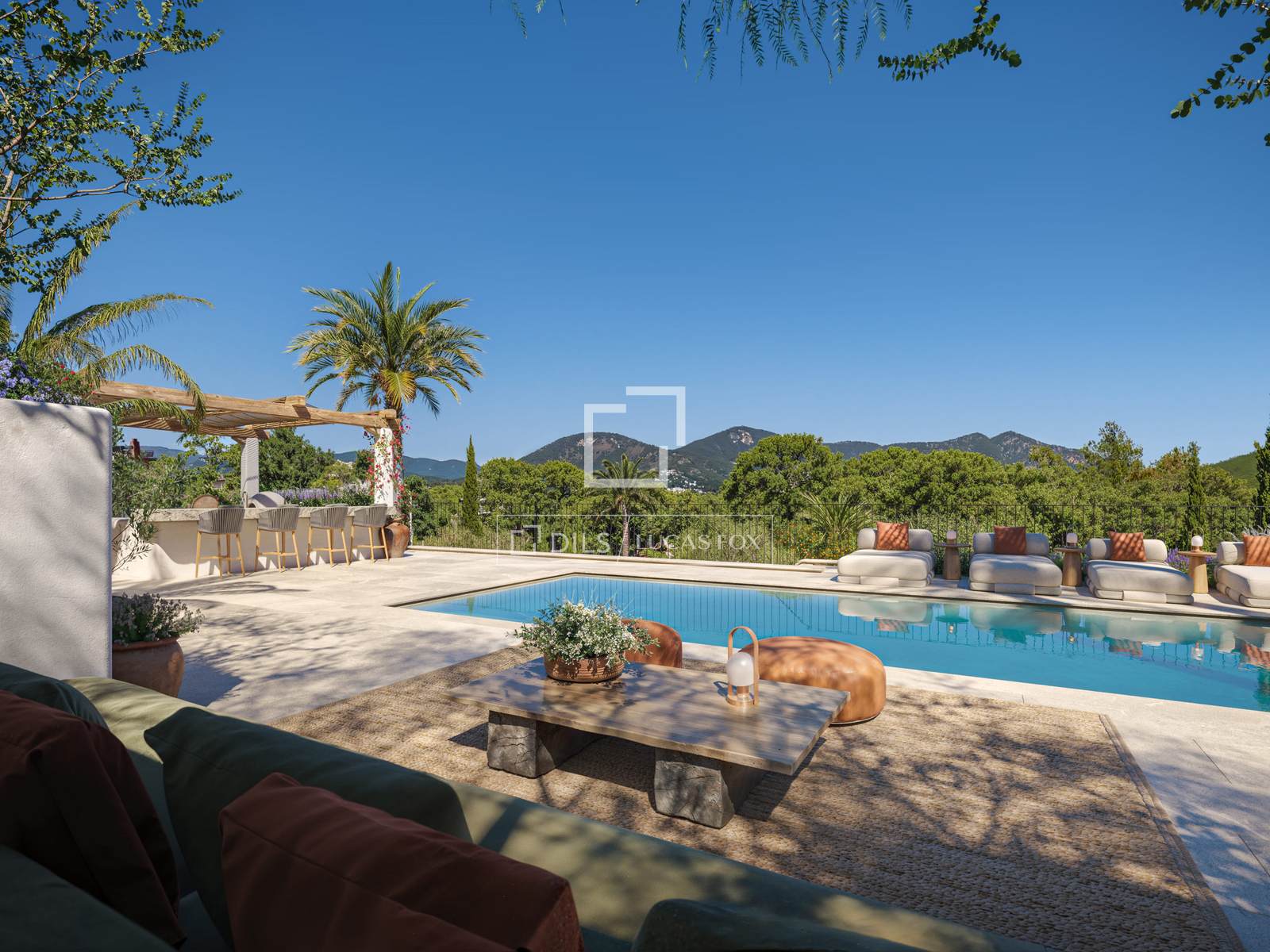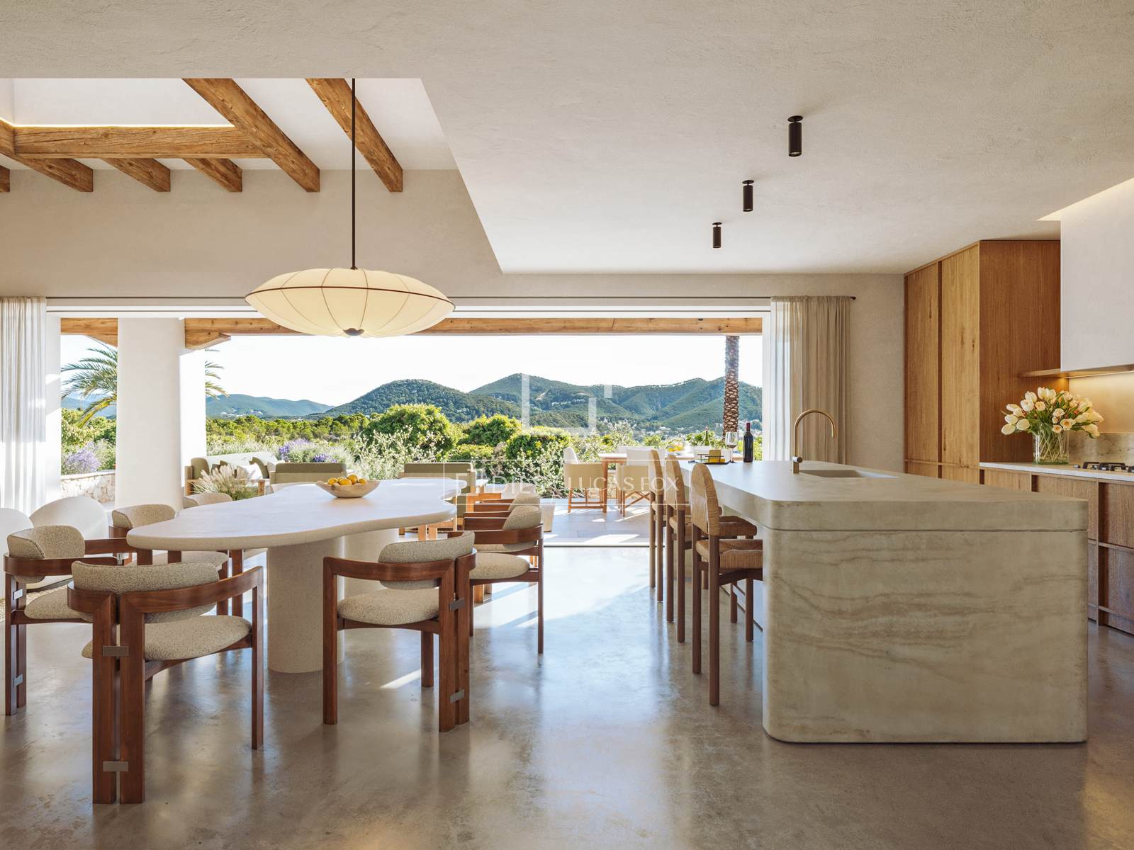 Aquesta vila de nova construcció, totalment legalitzada, és una oportunitat única per a qui cerca confort, estil i modernitat. Amb una superfície habitable de més de 520 m², repartida en diversos nivells, la casa ofereix cinc dormitoris amplis, cadascun amb el seu propi bany de luxe. Els espais de vida estan dissenyats pensant en l'amplitud i la llum: sostres alts, finestrals grans i una transició perfecta entre l'interior i l'exterior proporcionen una sensació rara de llibertat. Les zones d´estar i menjador es combinen en un disseny modern i elegant amb un toc càlid eivissenc. Aquí cuines en una cuina d´alta gamma, sopars amb vistes a la vall i et relaxes al saló mentre el sol es pon. Extres? Pensa al teu propi gimnàs, sala de benestar amb spa, un garatge espaiós i un estilós “man cave”, el teu refugi personal per relaxar-te o entretenir-te. Aquesta vila no és només un lloc per viure, sinó un lloc per experimentar. Cada detall està cuidat, des de la distribució fins a l'elecció dels materials. Tot està enfocat a crear un estil de vida sense preocupacions on el confort i la classe van de bracet.