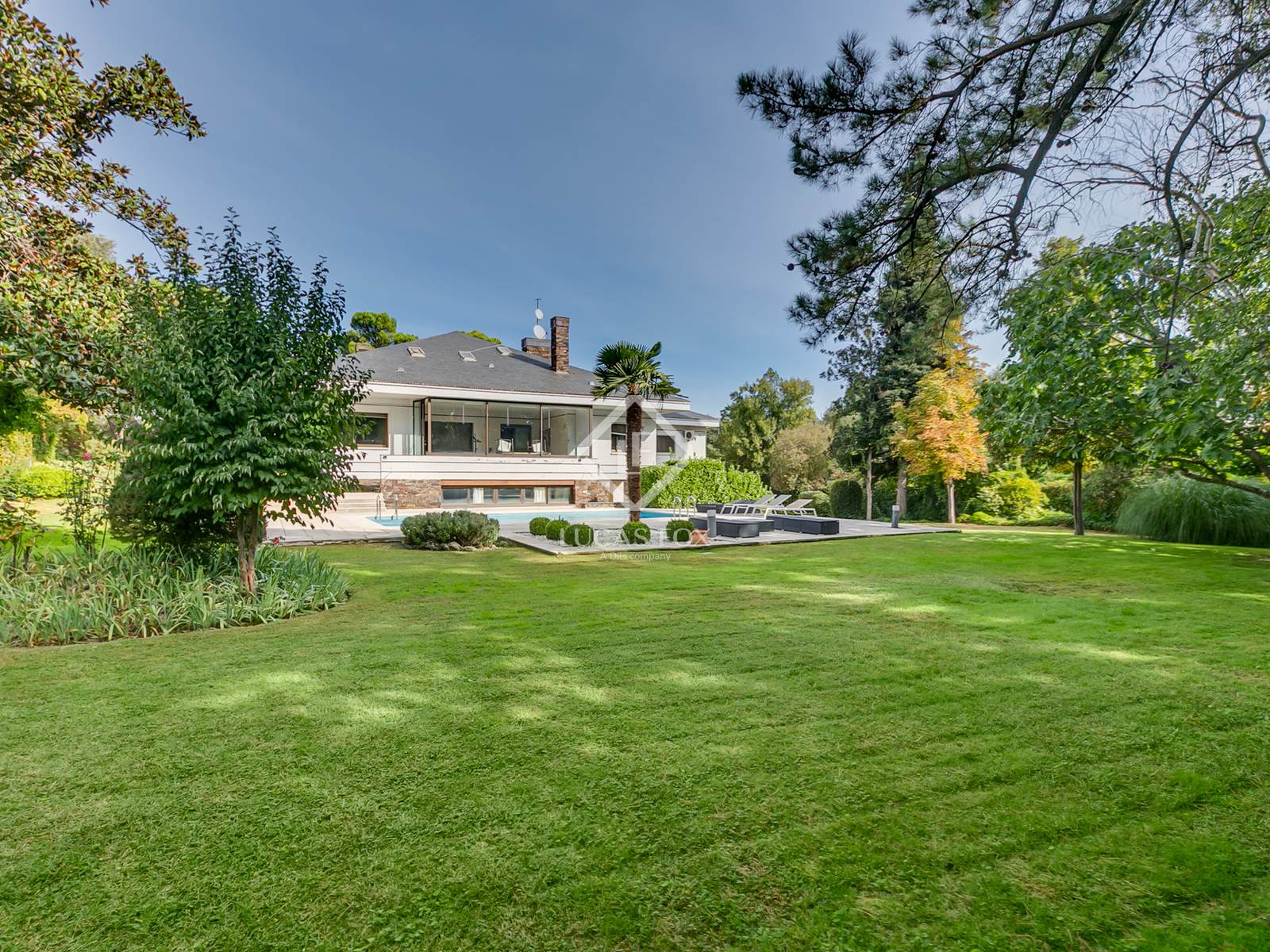 A la planta principal, un elegant vestíbul dóna accés a un ampli saló en dos ambients, menjador independent, despatx, sala d'estar i un porxo de vidre amb vistes al jardí. La cuina disposa de zona doffice, rebost, bugaderia i dormitori de servei amb bany.