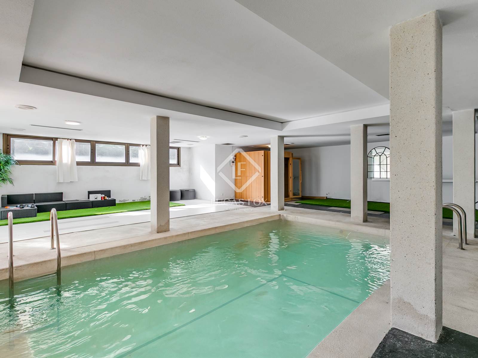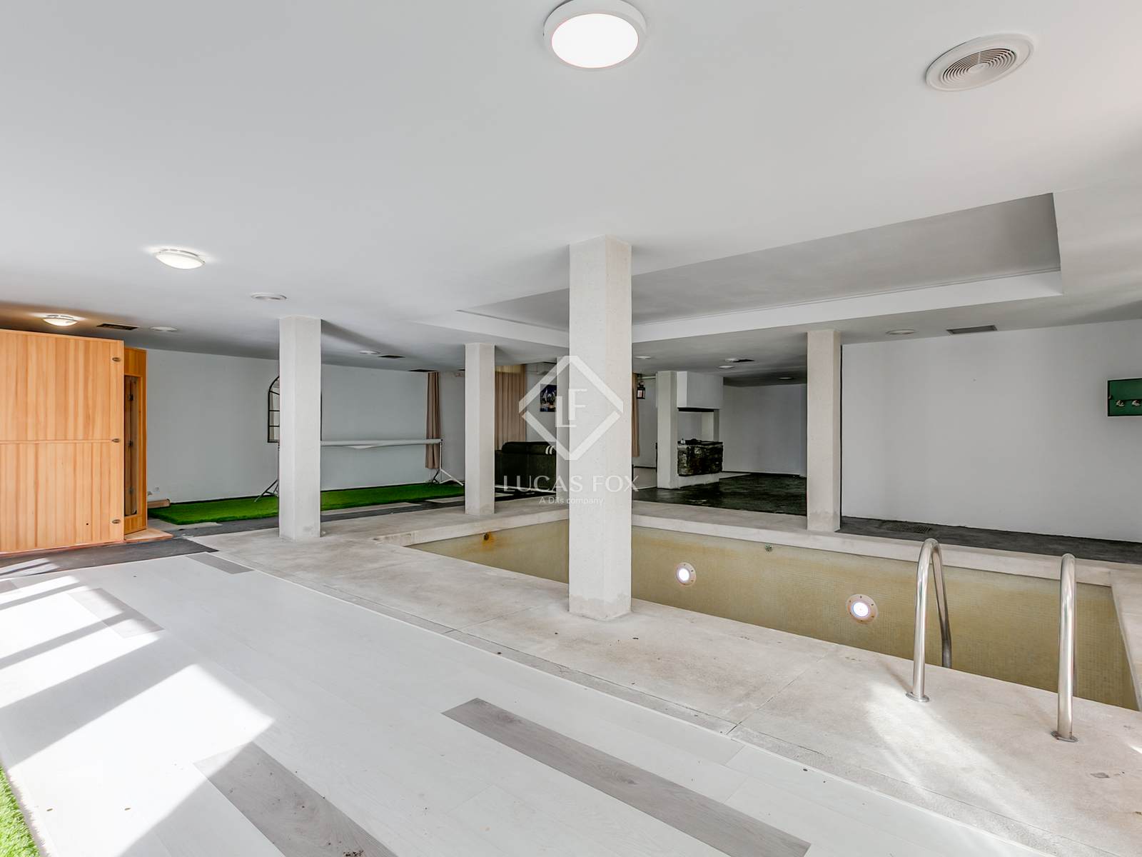 El soterrani té un garatge per a dos cotxes, piscina climatitzada amb vestidors i diverses àrees auxiliars. A l'exterior, la propietat disposa de piscina privada, calefacció per gasoil i aire condicionat.