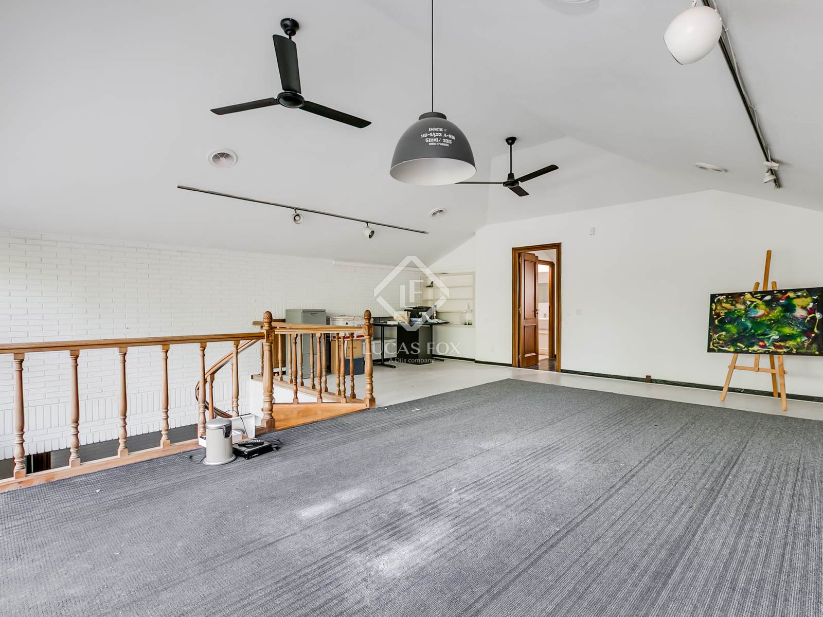 A la planta superior, hi ha un dormitori addicional amb bany i una gran sala polivalent de més de 70 m², perfecta com a estudi, gimnàs o sala de jocs.