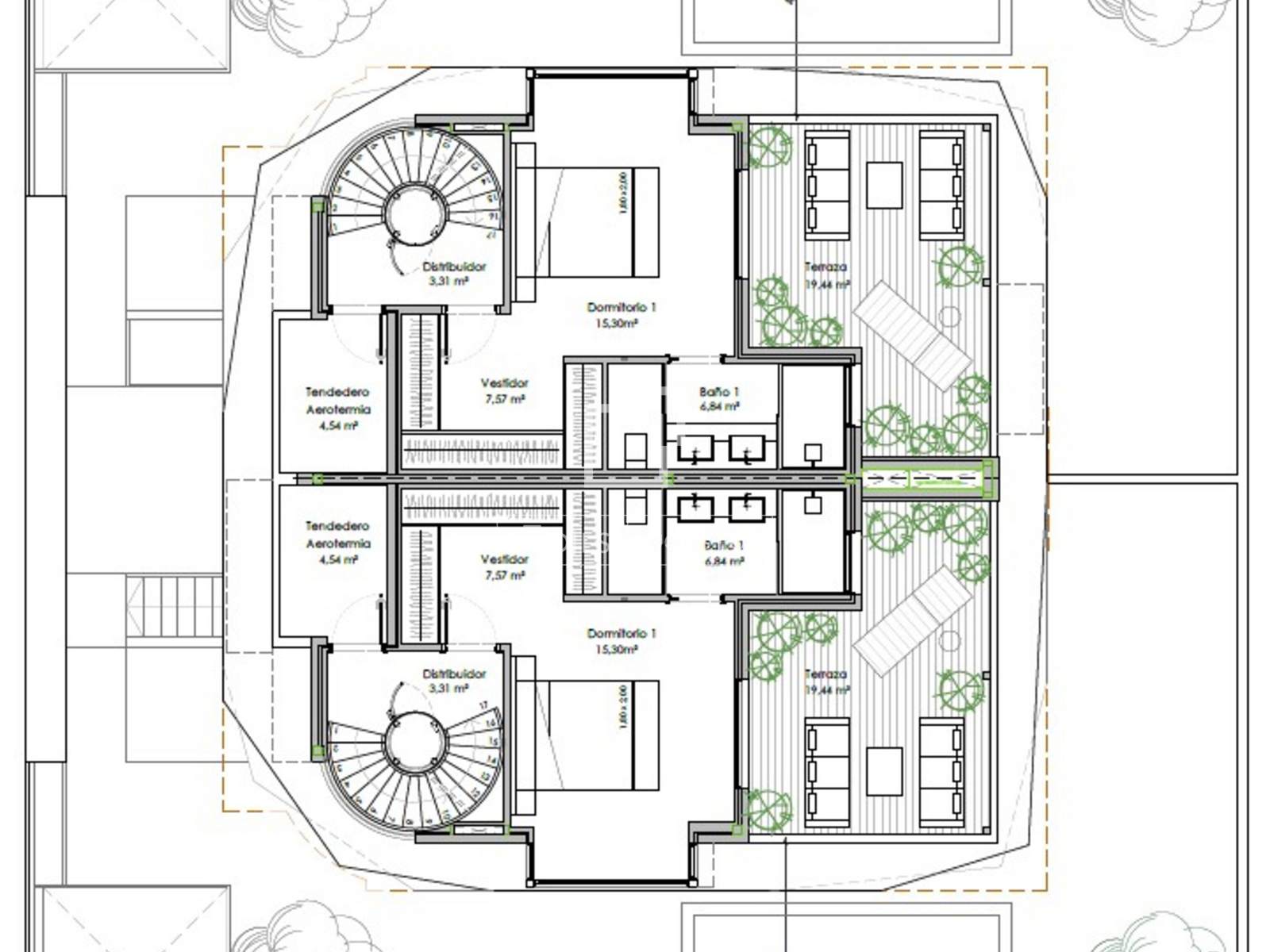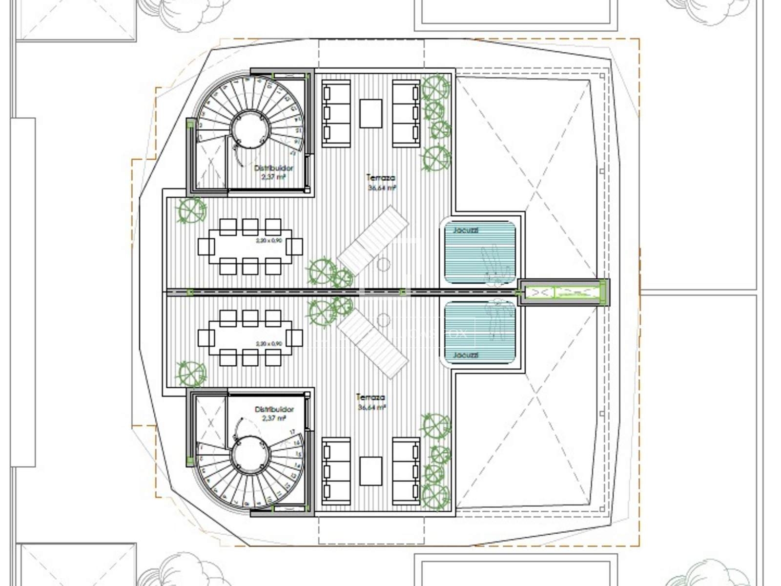 La planta primera té tres dormitoris i dos banys complets, distribuïts al voltant d'un espai obert a doble alçada que aporta amplitud i disseny. A la segona planta se situa la suite principal, amb vestidor independent, bany en suite i accés a una terrassa privada. La darrera planta ofereix un espectacular solàrium amb jacuzzi, ideal com a zona chill-out. L'habitatge inclou garatge amb punt de recàrrega per a vehicle elèctric, terra radiant, fusteries amb trencament de pont tèrmic i excel·lents qualitats en acabats porcellànics.