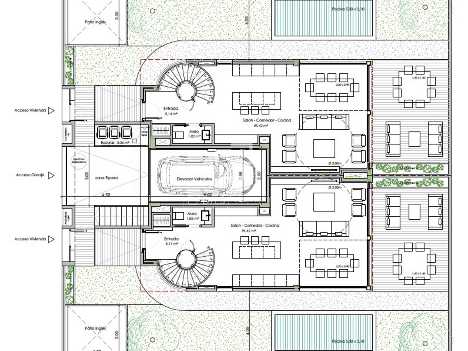 L´edifici presenta una arquitectura contemporània de línies netes, amb façana de disseny actual i amplis finestrals que afavoreixen l´entrada de llum natural. A l´exterior, l´habitatge disposa de jardí privat amb piscina de 2x5 metres i zona de terrassa, creant un espai ideal per al´oci i la relaxació. A la planta baixa hi ha una àmplia zona diàfana de saló-menjador amb cuina integrada de més de 39 m², amb accés directe al jardí. La cuina està equipada amb mobiliari de gran capacitat i electrodomèstics de primeres marques, a més de taulell de granit. En aquesta planta també hi trobem un lavabo de cortesia.