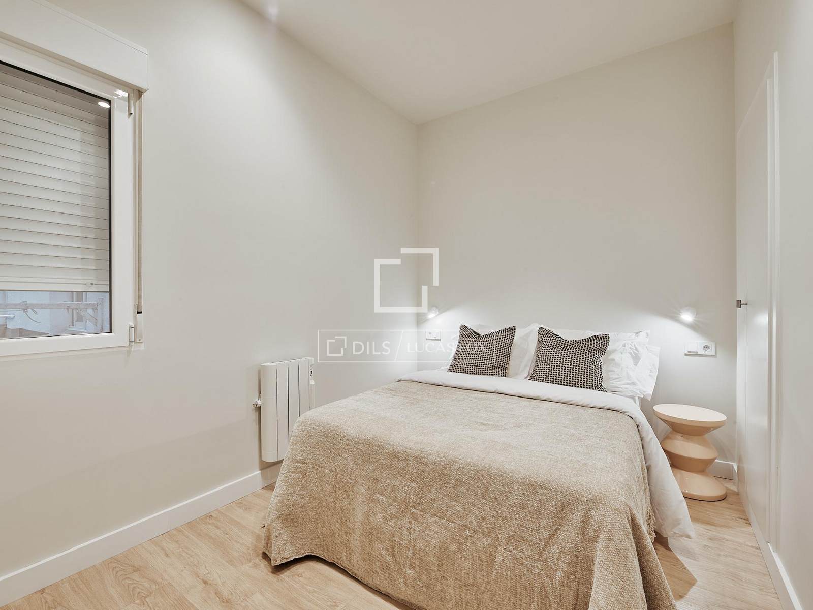 L´habitatge s´ubica en una planta baixa interior i compta amb una superfície de 65 m². Ha estat completament reformada sota un projecte d'arquitectura i disseny de l'estudi Arctempus, amb un estil contemporani i funcional. El pis disposa de dos dormitoris dobles, un bany complet i una còmoda zona de dia amb saló i cuina totalment equipada.