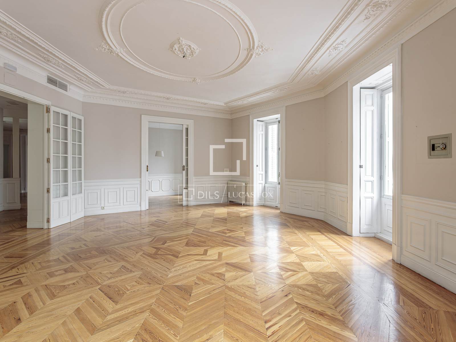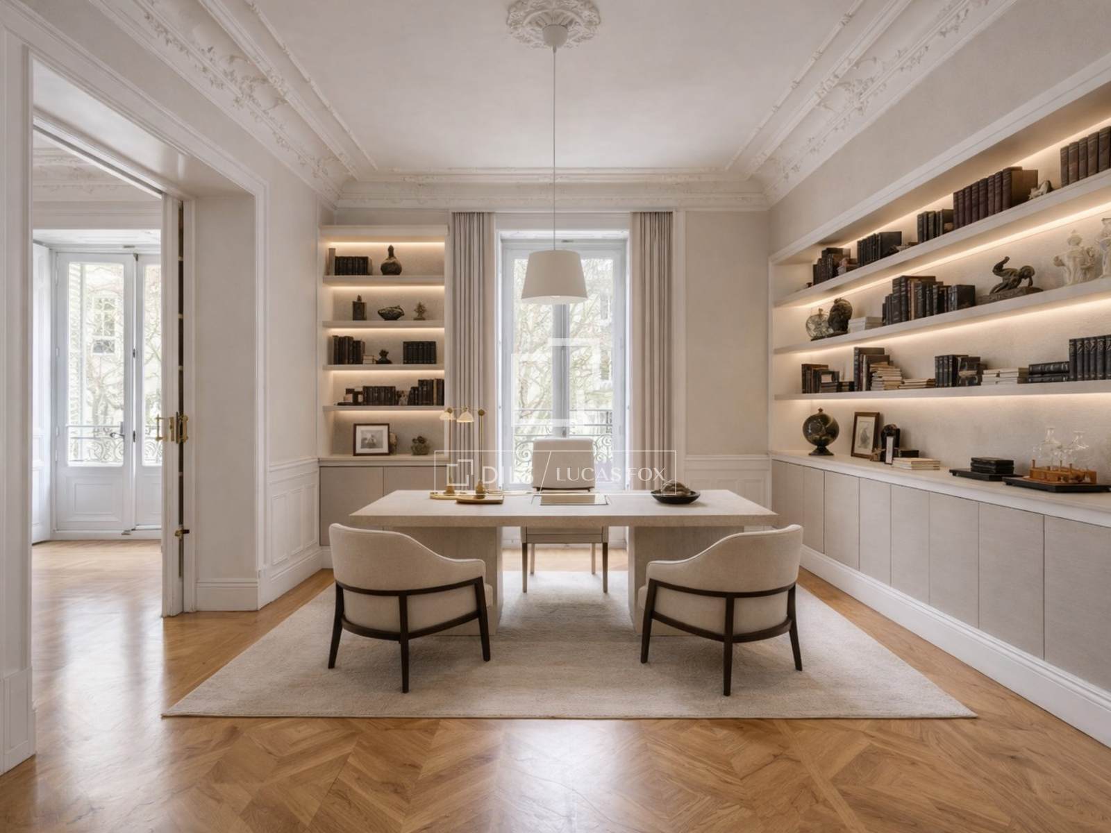 Lucas Fox presenta aquest elegant pis situat al prestigiós barri de Recoletos, dins del districte de Salamanca, a Madrid. Se situa en una finca clàssica representativa, amb una imponent façana i vuit balcons al carrer, que aporten una extraordinària lluminositat i vistes clares.