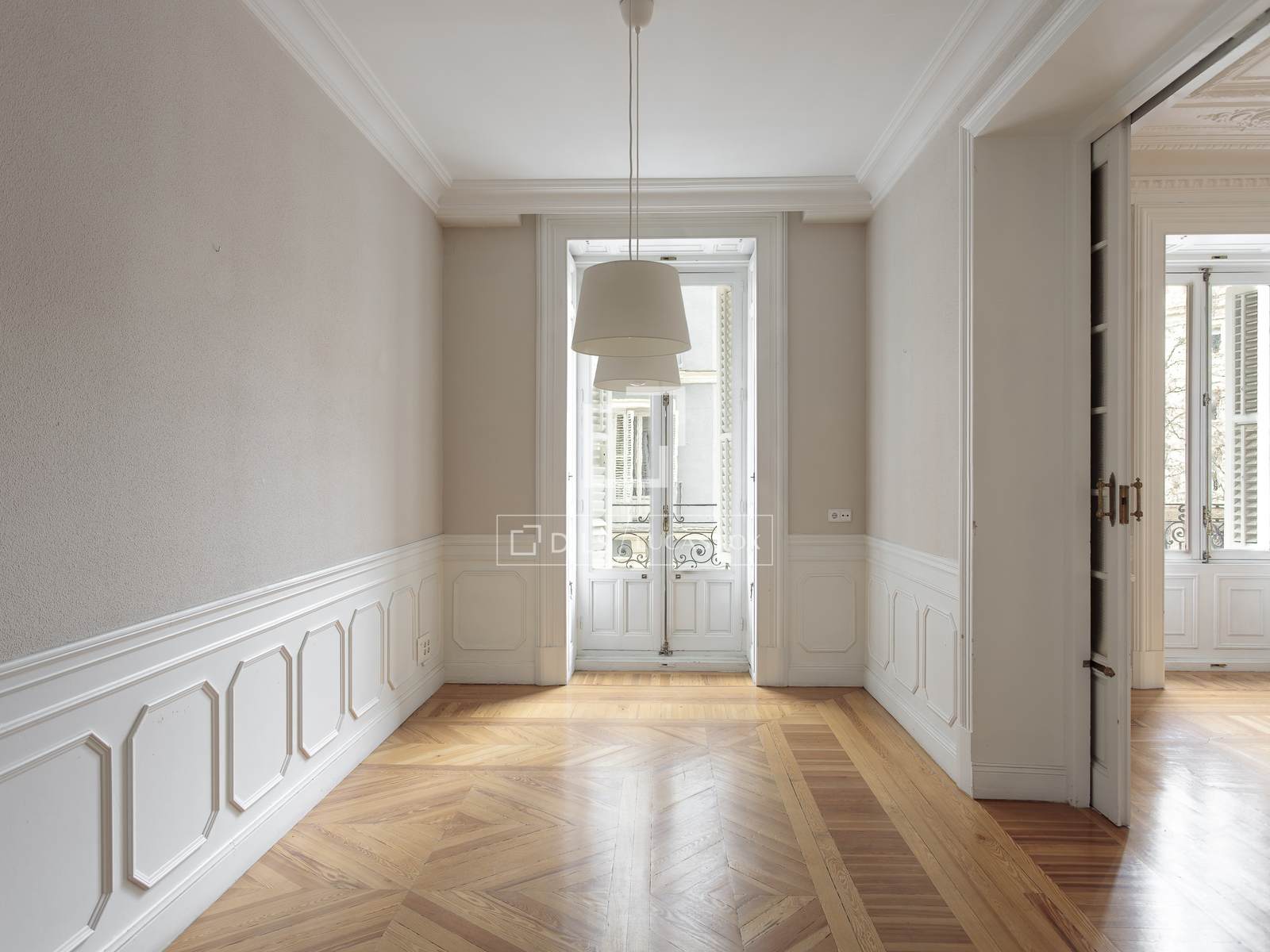 Tot i necessitar actualització, l'habitatge conserva valuosos elements originals que representen el caràcter de l'arquitectura clàssica madrilenya: sostres alts, elegants motllures i terres de fusta amb sanefa. Aquests detalls que aporten personalitat es poden integrar perfectament en un projecte de reforma d'alt nivell.
