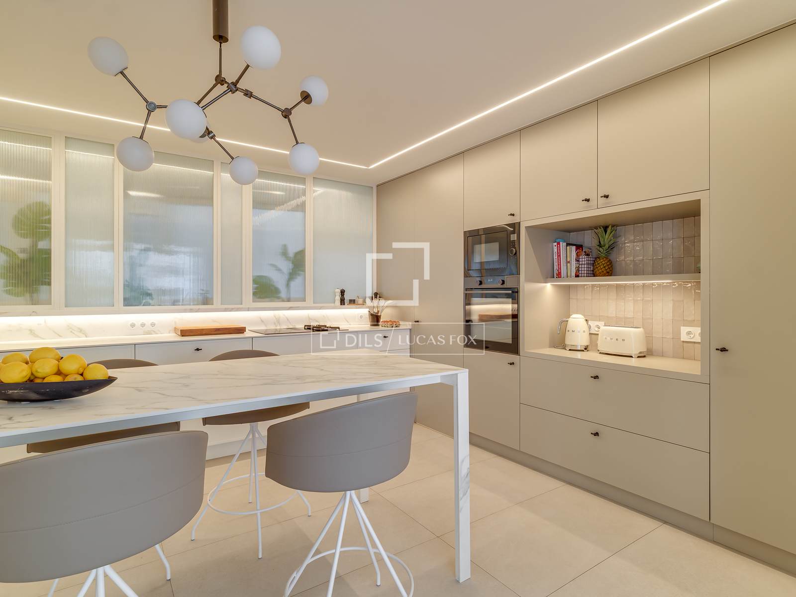 La cuina és àmplia i moderna, amb una còmoda zona de bugader independent que facilita les tasques diàries sense renunciar al disseny.