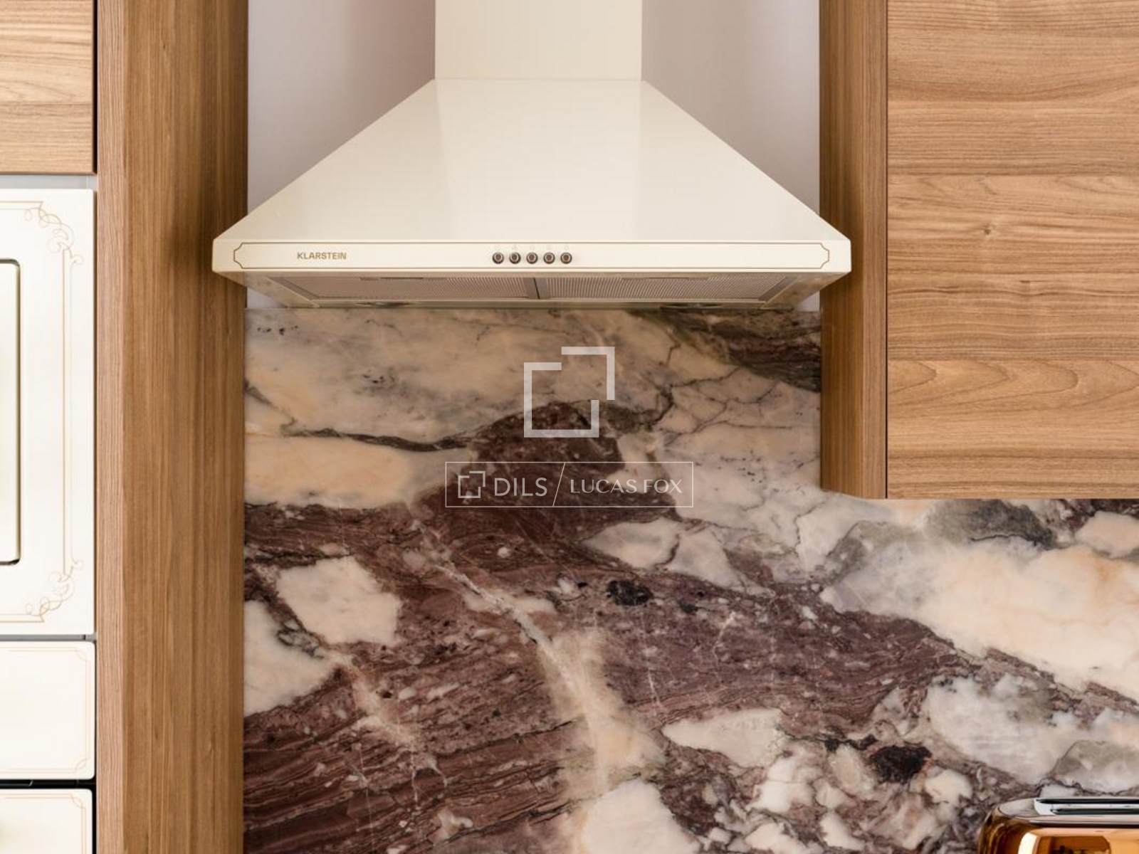 Des del seu colorit passadís d'entrada, s'accedeix a la cuina, amb murs i aigüera de marbre, tot i ser petita, aquest espai és molt pràctic mostra el bon gust i la qualitat de la reforma feta el 2023.