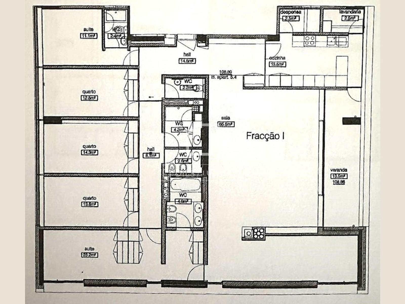 Aquest apartament, amb tres façanes (nord, est i sud), ofereix cinc dormitoris, incloent-hi una suite principal amb vestidor i un ampli passadís que condueix a la resta de dormitoris, així com un bany complet que dóna servei a tres de les zones privades.